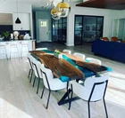 Entryway Epoxy Table Top, Live Edge Epoxy Walnut Table, Epoxy Countertop, Epoxy Resin River Table Top, Epoxy Vanity Countertop, Epoxy Balcony Table, Epoxy Living Room Table, Modern Epoxy Table Top, Epoxy Dining Table for 6, Epoxy Dining Table for 8. This will be a very unique and attractive table top for your home. For sure, be eye catching and attract everyone visiting your home. You will definitely going to receive a round of applause for bringing this beautiful table top to your home. Very different from simple looking wooden slab. Pricewise, we offer our epoxy table top at very reasonable price. We can also negotiate. Please write to us with your query. We can customize epoxy table top as per your requirements. We can customize it as per size, design, wood placement, epoxy resin colour. We can make any size 2 ft X 4 ft (24 inch X 48 inch) 5 ft X 2.5 ft (60 inch X 30 inch) 5 ft X 3 ft (60 inch X 36 inch) 6 ft X 3 ft (72 inch X 36 inch) 7 ft X 4 ft (84 inch X 48 inch) We can also make long countertop upto 20 ft. Table Thickness : 30 mm, Height : 30 inches We provide designer iron legs complimentary with epoxy table top. You can select any of the design and message us. All our legs are unique. Our epoxy table top are unique and durable as we use only seasoned and treated wood for long durability. Also, we use only quality epoxy resin for best finish. How we process the order ? Once you place the order, we provide you wood work for your confirmation. If there is any customization you need, we do it as per your requirement. Once wood work is approved, we cast epoxy resin and finish it. Before dispatch, we will share the pics and videos for your confirmation. Once approved, we do export packing and dispatch it via DHL for fast and safe shipping. Our processing time is 3-4 weeks and shipping will take 7-10 days to reach your door. Please note that wood is natural. So every epoxy table will be slightly different in terms of shape, colour and texture. We cannot provide exactly the same as demonstrated in the photo. All our shipments are insured. If you receive the goods in damaged condition, we will either provide full refund or replacement as per your decision. If there is any custom duty or local taxes at destination, same will be borne by the buyer. If you want to know anything, please write to us. We will be very happy to answer your questions.