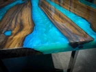 60"x30" Blue Epoxy River Table Top, Epoxy Dining Table, Walnut Wood Epoxy Table