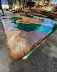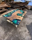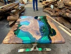 60"x30" Clear Green Epoxy Table Top, Epoxy Dining Table, Walnut Wood Epoxy Table