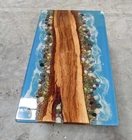 Kindly note: Any accessories, chairs, bench, and legs shown in the picture are NOT included in the given prices. If you want legs, you will need to pay an additional fee. Please contact me if you have any queries." "Note: Any customs duties and other levies in the destination country are the responsibility of the buyer." "Kindly note: Raw wood is used in its natural form and shape to make the table. The table shown in the photos has already been purchased, so the actual product may vary from the picture shown." Elevate your home decor with our exquisite Epoxy Wooden Table Top, a true masterpiece of craftsmanship. Each table top is a stunning fusion of natural wood and mesmerizing epoxy resin, creating a one-of-a-kind work of art that will become the focal point of any room. Our meticulous process begins with hand-selected, sustainably sourced wood that is skillfully cut and shaped to preserve its unique character, whether it's a rustic live edge or a sleek, modern design. The wood is then expertly sealed to ensure durability and longevity. But what truly sets our Epoxy Wooden Table Top apart is the mesmerizing epoxy resin infusion. Our artisans carefully pour and sculpt the resin to create mesmerizing rivers, waves, or abstract designs that enhance the wood's natural beauty. You can choose from a wide range of colors and patterns to suit your style and taste. The result is a seamless blend of nature and artistry, where the warmth of wood meets the contemporary allure of epoxy resin. The glossy finish not only enhances the table's aesthetics but also provides a smooth, durable surface that's easy to clean and maintain. Whether you're looking for a statement piece for your dining room, a unique coffee table, or a conversation starter in your office, our Epoxy Wooden Table Top is designed to impress. It's perfect for both classic and modern interiors, adding a touch of sophistication and elegance to your space. Each table top is handcrafted with precision and attention to detail, ensuring that you receive a high-quality piece of functional art. Plus, we offer customization options, allowing you to choose the wood species, size, and epoxy resin design that best suits your vision. Bring the beauty of nature and the allure of contemporary design into your home with our Epoxy Wooden Table Top. Experience the artistry of our process and transform your living space into a haven of style and sophistication. Upgrade your home today with a piece that's not just a table but a work of art. Explore our selection and discover the perfect Epoxy Wooden Table Top to complement your unique style.