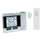 Tired of fumbling for your phone in the middle of the night to see the time and temperature? Why not simply turn and look at the ceiling or wall? With ’s Atomic Projection Alarm Clock with Indoor & Outdoor Temperature, the information you need is projected onto your ceiling or wall for easy viewing. With adjustable projection angle and focus you’ll be sure to cast the information you want to a perfect viewable surface. Displays your choice of time, indoor temperature, outdoor temperature or alternating time and temperature. There’s no need to adjust for Daylight Saving time. ’s Projection Alarm Clock adjusts automatically if desired. Choose a 12 or 24 hour time display, as well as calendar year, month, and date. With four backlight level options and auto dim, you’ll have just the right viewability for night or day. Both display and the included wireless outdoor sensor have low battery indicators for uninterrupted service. With all these features in a handsome silver case, brings function and form to your bedside. Projects time, indoor, outdoor temperature, or alternate all on the wall or ceiling; Projection brightness control and 270° arm rotation for proper viewing Atomic time and date (manual set option); Automatically updates for Daylight Saving Time (AUTO/ON/OFF option); 7 Time zones: AST, EST, CST, MST, PST, AKT, HAT 1" time digits; 12/24 Hour mode with 10 minute snooze alarm; Adjustable white backlight (4 levels, plus OFF) with auto dim Monitors Indoor and Wireless Outdoor temperature (°F/°C) with trend arrows; Customized calendar: full weekday, day/month/date, alarm time Clock: Requires 5.0V power adapter (optional) 3 AAA Alkaline batteries (not included) for power loss; TX141-Bv3 Wireless Temperature Sensor: 2 AA batteries (not included)