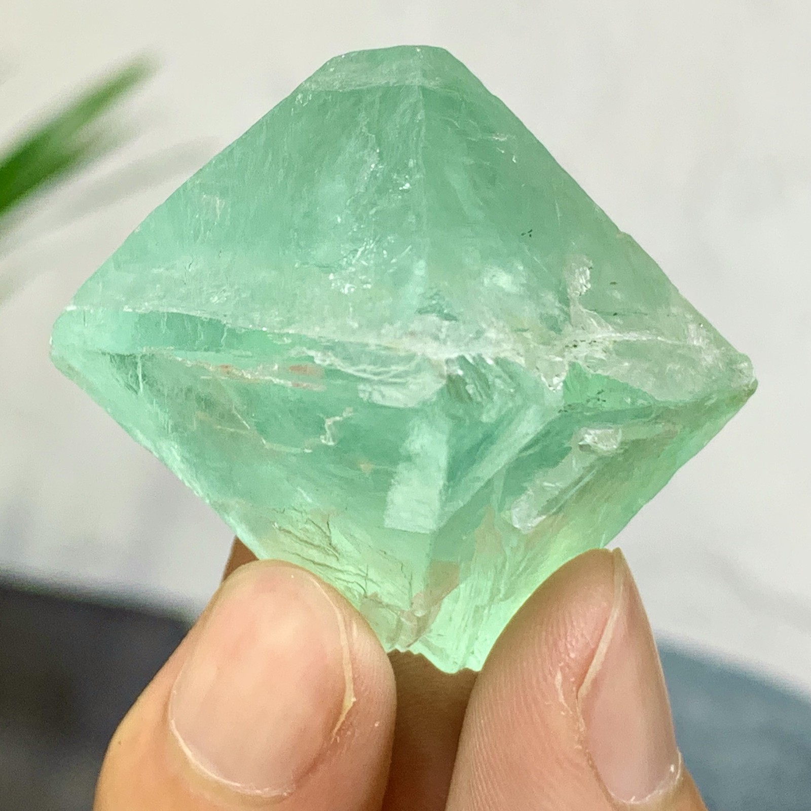Natural blue green fluorite octahedron crystal for healing and energy