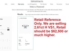 Descriptions Tiffany & Co Novo Platinum Princess Cut Diamond Engagement Ring This ring is brand new. The diamond is re-mounted at Tiffany's (comes with service receipt) Princess cut diamond weighs 2.61ct Diamond has laser inscription ''T&Co.K01050013'' (See 3rd pic) The Princess cut diamond color H clarity VS1 clarity 20 round diamonds, total weight 0.16ct Total carat weight 2.77ct Ring is a size 5.5 (This ring is re-sizable) Ring stamped ''(c) Tiffany&Co. Pt950 24835278 D2.61ct'' Retail price $62,500 + Tax Comes with original Tiffany ring box, Copy of Tiffany Laboratory report paper, and a service receipt. Stock #25024 Payments Payments must be received within 36 hours of auction end. Seller reserves the right to cancel transaction if payment is not received accordingly. Shipping Please note that unless seller makes a mistake or item arrived damaged, otherwise shipping expenses are NOT refundable. Shipping includes actual shipping cost, packaging and insurance where applicable. If one-day shipping is not offered, it may be available upon request. International buyers are also responsible for custom duties. Returns Unless otherwise stated, all items are eligible for 30-day return with no questions asked. About Us We are a small business located in downtown Chicago. Our specialty is pre-owned designer jewelry. Please find confidence in our feedbacks from thousands of satisfied customers. All items have been carefully examined by our professional jewelers to be authentic before we list it for sale. We guarantee its authenticity or your money back! Contact Us Please email us if you have additional questions.