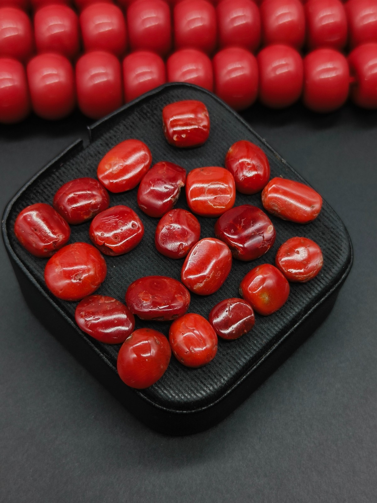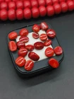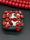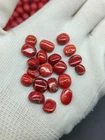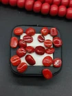 This product is a lot of 63 carats of 100% natural Italian red coral cabs flat back red coral cabochon. The gemstones are opaque in transparency, orange in color, and are cut with excellent quality. They are vintage, not enhanced, and come with certification from IGI. The gemstones are from Italy and are eye clean in clarity. This wholesale lot is perfect for those in need of high-quality natural red coral cabochons for jewelry-making projects.