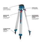 Extendable height to 63 in. Flat, elevator head type with 5/8-11 thread Lightweight for easy transportation on the job site The Bosch BT160 Aluminum Contractor's Tripod is designed for exterior use with a rotary laser on the job site. It features a universal flat head, string hook for a plumb bob and is lightweight for easy transportation on the job site. It's quick clamping system is ideal for quick setups. Features a lightweight and durable aluminum design with sturdy hinges, clamps and shoe castings Electrostatic powder-painted casting for a durable and long-lasting finish Flat, elevator head type with 5/8-11 in. thread Extended height of 63 in. Positive locking quick clamps are ideal for holding levels in place Includes tripod and heavy-duty poly-webbing shoulder strap Designed for exterior use but can be used inside too