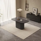 About this item Sturdy and Unique Oval Base : Our dark grey wood grain oval dining table features a robust and aesthetically pleasing design with its elongated oval-shaped legs, measuring 33.66 inches in length. These sturdy pillars not only provide a strong visual statement but also boast exceptional load-bearing capabilities, ensuring the table can comfortably support substantial weight without compromising stability Spacious and Thick Tabletop : Crafted from premium quality boards, this expansive tabletop offers a generous surface area for hosting large family dinners or social gatherings. Measuring 63 inches long and 33.46 inches wide, it provides ample room for multiple place settings. The tabletop thickness of 1.88 inches further adds to its durability and solid feel underhand Rounded Corners for Safety: Thoughtfully designed with rounded corners, this dark grey wood grain kitchen table prioritizes safety, especially in households with children or pets. This ergonomic touch helps prevent bumps and injuries, making it a family-friendly addition to your dining space Elegant Dimensions and Design: With dimensions of 63" L x 33.46" W x 29.64" H, the table is proportioned to seat a considerable number of guests while maintaining an elegant presence in any dining room. Its sleek, dark grey wood grain finish complements a variety of decor styles, from minimalist to classic, and allows the table to serve as the centerpiece of your dining area Easy Assembly and Maintenance : This dining table has been expertly engineered for effortless assembly, allowing you to set it up quickly and efficiently. Moreover, the smooth surface and high-quality materials make cleaning a breeze, ensuring that the pristine beauty of the dark grey wood grain finish remains intact with minimal upkeep over time 100% Customer Guarantee : Guyii provides you with quality products and excellent customer service. If you encounter any problems with the dining table, please do not hesitate to contact us, we will provide you with fast and friendly customer service. Get yours and more for family and friends TODAY