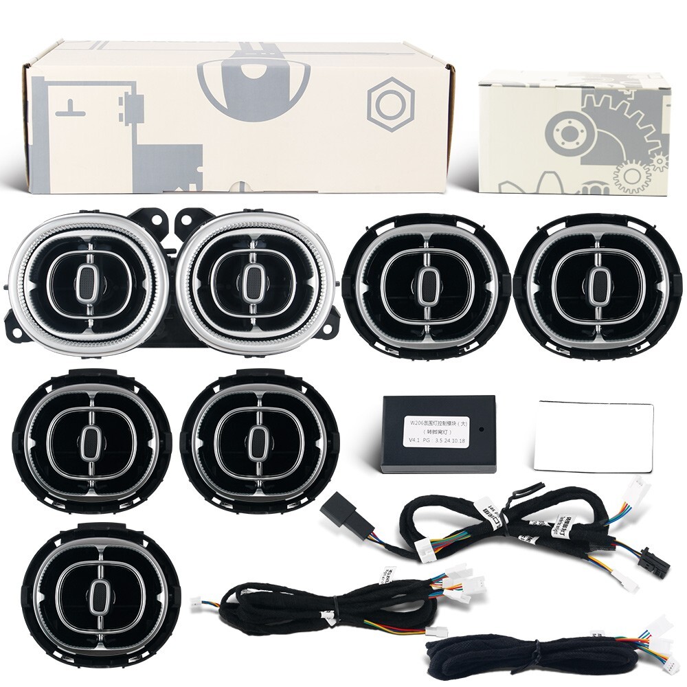 Description: 1. Appearance design: Made of high-quality materials and fine polishing process, the streamlined design perfectly integrates the product with the interior, showing an unparalleled texture. 2. Synchronized original car ambient lighting: Perfectly matches your original Mercedes-Benz ambient lighting system, providing color options, which can be adjusted at will to create a personalized driving atmosphere. 3.4D Surround Ambient Lighting: Using advanced ambient lighting technology, it creates a highly technological visual effect for your driving space. From the dashboard to the door trim, the lights flow, giving your Mercedes-Benz a unique charm. 4. High-efficiency refrigeration: The product is manufactured in a 1:1 mold with the original car, ensuring that the cold air blown from the air conditioning outlet is more concentrated and powerful, quickly reducing the temperature inside the car, and providing you with a long-lasting and refreshing driving environment. 5. Customized for Mercedes-Benz models: Perfectly adapted to Mercedes-Benz models, it can be easily installed without cumbersome modifications. Every detail has been carefully designed and perfectly integrated with the original car interior to highlight your taste and style. 6. Durable: Made of high-quality materials and subject to strict quality testing to ensure the product is durable. Compared with original car parts, they are more durable and protect your driving experience. Features: 100% Brand New In Box Made Of High Quality ABS Plastic Direct Replacement Plug and Play Fitment: Mercedes Benz W206 C-Class GLC X254 64 colors 2022 2023 2024 2025 Package Included: 7PCS/Set Front & Rear Air Vent with Ambient Light ( 64 Colors ) 5PCS Front Air Vent + 2PCS Rear Air Vent NOTE: Not Including Installation Guide or Manual. Professional installation is highly recommended.