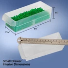 This organizer with drawers is perfect for storing and organizing classroom or office supplies, crafts, beads or sewing supplies, hardware, small toy storage, fishing gear and more. This hardware storage organizer has flexible, strong, see-through drawers that make identifying contents easy. The durable construction of this parts organizer means you can count on it to last. The storage cabinet's compact size and lightweight design make it easy to move from one location to another, making it ideal for use in small spaces. Our storage drawers can be easily placed on a workbench or shelf, providing easy access to your tools and supplies. This organizer with drawers can be stacked securely or mounted on the wall using the keyhole slots molded into the back of the cabinet. 64-drawer storage organizer that can be stacked or wall-mounted Great for classroom or office supplies, hardware, crafts, hobbies and more Rugged, high-impact polystyrene plastic frame and see-through drawers Cabinet Dimensions: 20-Inch W x 6-3/8-Inch D x 15-13/16-Inch H Drawer Dimensions: 6 x 2-7/32 x 1-9/16 inches