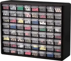 HEAVY DUTY CABINET WITH 64 DRAWERS: The 64-drawer small storage cabinet is made in the U.S.A. from rugged, high-impact plastic and measures 20" W x 6" D x 16" H; Organizer drawers - 6" x 2-1/4" x 1-5/8" GARAGE ORGANIZATION: The small parts organizer is great for garages and workshops for both homeowners and businesses; The plastic storage drawers can be used as tool box, screw organizer or for battery storage; Keep nails and other small parts accessible CLASSROOM ESSENTIALS: Teachers can use the stackable storage drawers for classroom organization; Use it as a teacher toolbox, art supply storage organizer, craft storage cabinet for scrapbook supplies, and more HOME STORAGE AND ORGANIZATION: This plastic storage cabinet offers many uses around the home; It can be a lego storage organizer, craft organizer, or sticker organizer; Use it for makeup storage and organization or for medicine and first aid supplies FEATURES: Stack cabinets securely or use keyhole slots to mount for wall storage; Finger-grip drawer pulls provide easy access; Rear stop tabs prevent contents from spilling; Drawer dividers are included and molded into the back of the cabinet