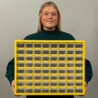 HEAVY DUTY CABINET WITH 64 DRAWERS: The 64-drawer small storage cabinet is made in the U.S.A. from rugged, high-impact plastic and measures 20" W x 6" D x 16" H; Organizer drawers - 6" x 2-1/4" x 1-5/8" GARAGE ORGANIZATION: The small parts organizer is great for garages and workshops for both homeowners and businesses; The plastic storage drawers can be used as tool box, screw organizer or for battery storage; Keep nails and other small parts accessible CLASSROOM ESSENTIALS: Teachers can use the stackable storage drawers for classroom organization; Use it as a teacher toolbox, art supply storage organizer, craft storage cabinet for scrapbook supplies, and more HOME STORAGE AND ORGANIZATION: This plastic storage cabinet offers many uses around the home; It can be a lego storage organizer, craft organizer, or sticker organizer; Use it for makeup storage and organization or for medicine and first aid supplies FEATURES: Stack cabinets securely or use keyhole slots to mount for wall storage; Finger-grip drawer pulls provide easy access; Rear stop tabs prevent contents from spilling; Drawer dividers are included and molded into the back of the cabinet