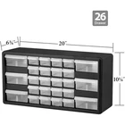 HEAVY DUTY CABINET WITH 64 DRAWERS: The 64-drawer small storage cabinet is made in the U.S.A. from rugged, high-impact plastic and measures 20" W x 6" D x 16" H; Organizer drawers - 6" x 2-1/4" x 1-5/8" GARAGE ORGANIZATION: The small parts organizer is great for garages and workshops for both homeowners and businesses; The plastic storage drawers can be used as tool box, screw organizer or for battery storage; Keep nails and other small parts accessible CLASSROOM ESSENTIALS: Teachers can use the stackable storage drawers for classroom organization; Use it as a teacher toolbox, storage organizer, craft storage cabinet for scrapbook supplies, and more HOME STORAGE AND ORGANIZATION: This plastic storage cabinet offers many uses around the home; It can be storage organizer, craft organizer, or sticker organizer; Use it for makeup storage and organization or for medicine and first aid supplies