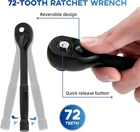 64-Piece 3/8" Drive Socket Set, SAE 5/16"-1" & Metric 6mm-24mm, Deep & Shallow, 72-Tooth Ratchet Wrench, Extension Bars, 1/2" F to 3/8" M Reducer, Universal Joint & Power Drill Adapter Superior Quality & Durability: The socket set is crafted from high-grade chrome vanadium steel for enhanced strength and durability. With a hardness above 60HRC, the heat-treated sockets offer exceptional wear resistance and can handle extreme torque changes. The phosphate-coated surface ensures excellent corrosion resistance, effectively preventing rust. Easy-to-Read Dual Markings: Each socket features laser-etched markings in two locations for quick size identification, even in dimly lit environments. Save time and effort searching for the right socket size. 6-Point Design & Retention Hole: The 6-point design ensures a perfect fit between the socket and bolt, minimizing wear and prolonging the bolt's lifespan. The pneumatic hole keeps the socket securely connected, preventing it from falling off during use. Organized & Secure Storage: The socket set comes in a sturdy black blow-molded case, specifically designed to accommodate each socket size. The case's two locks prevent accidental opening, ensuring easy storage and minimizing the risk of lost sockets. ANSI Standards & Five- satisfaction: Our socket set meets ANSI standards and is backed by a five- satisfaction. If any part of the socket set is damaged during use, we'll promptly provide parts to ensure your satisfaction.