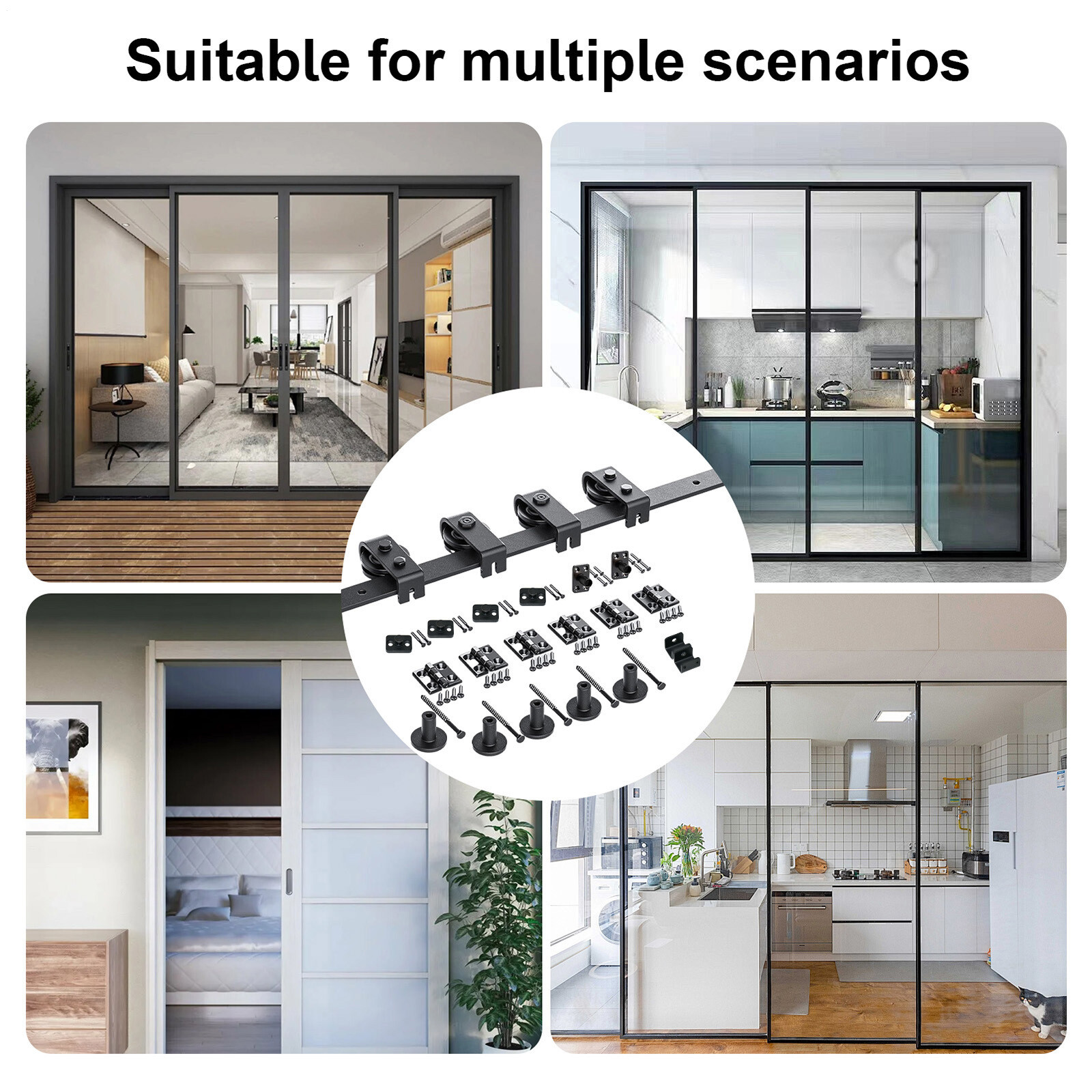 Store category Sign Up Now ! You may also like Product Description Bullet Points: Maximize Space: This complete sliding door hardware kit, with its quiet and smooth operation, includes all necessary components to build your sliding door, ensuring a seamless and space-efficient installation. Heavy Duty: This sliding door hardware kit is designed with wear-resistant bearings and nylon wheels crafted from heavy-duty carbon steel. Its 6mm thick track enhances carrying capacity, making it an ideal option for sliding doors that require unmatched versatility. Installation Made Easy: Our sliding barn door kit instructions provide graphic and text parsing manual for effortless setup, ensuring a quick and intuitive installation process to save your time. Enhanced Versatility: Promote your home's functionality with this sliding door hardware kit. Transform your living area, perfect for upgrading the study or dining room with a wide range of applications, including beyond the classic barn door style. Wonderful for Gift Giving: Ideal for men and women seeking a practical gift, this sliding door hardware kit enhances home aesthetics while offering a smooth, silent glide—perfect for family and friends. Upgrade your dining room with folding door kit! Designed for your family, this 6mm thick track makes for an easy and hassle-free installation. Specification: Colour: Black Material: carbon steel Track size: about 64 inches (162CM) Track splicing method: 4 pieces Scope of application: Door panel thickness 0.5-50MM Packing list: 4x FT track 4x roller 4x roller swivel stand 2x roller holder 6x hinge 2x ground guide fixings 2x sealing strip 1x screw pack 1x instruction manual 5x pipe clamp 35mm 5xwood screws M8*90 Note: The door is not included. Due to different lighting and screen settings, the item color may be slightly different from the picture. Due to different manual measurements, please allow a 1-2cm difference in size. Payment Delivery details Terms of sales About us Feedback & DSRs Payment Before you palce an order, please kindly make sure that you have a paypal account. We accept PAYPAL payment only. Payment should be completed within 2 days after auction closed, or unpaid dispute will be filed for an closing auction. An unpaid case will be filled after 4 days. Delivery details We ship to your eBay address. Each package will be shipped to US by UPS Regular Parcel with tracking number. Please check your shipping address carefully before checkout, it can't be changed if order completed. All items will be shipped within 1-2 business day upon receipt of payment.Orders placed on weekend will be shipped within 3 days. If you do not receive your item in 7-10 business days.please contact us immediately for further assistance. We will be responsible for any damages or losses incurred in the shipping process. About us We maintain high standards of excellence FIVE STAR and strive for 100% customer satisfaction! Positive Feedback is very important to us. We hope that you contact us immediately Before you give us neutral or negative feedback, so that we can satisfactorily address your concerns. We promise to offer the lowest price and high quality produce. Our working time: From Monday to Friday(9:30 am to 18:00pm), we don't working on holidays ,hope you can understand and know that , thank you. Please always talk to us via ebay Message. We appreciate your business and look forward to growing our e-Bay sales with satisfied customers. Feedback Contact us If you have any questions, please feel free to contact with us by ebay Message during our business hours ( 9:30a.m. to 5:30 p.m.), or email us through eBay, we will try our best to help you to resolve it. For any presale or after-sale questions,please do feel free to email us! Due to the time difference, each email will be replied within 1 working day,and weekend will be delayed a bit. Feedback