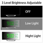 Product specification: 【Material】: ABS shell, LED mirror screen 【Power】: USB power 【Memory battery】: 3 AAA batteries (not included) 【Brightness Adjustment】: Press UP button to adjust brightness in three levels 【Light-dark color scheme】: the default brightness is automatically dimmed from 18:00 to 6:00 and the system switches between 12 hours and 24 hours 【Nap off function】: lasts 5 minutes 【Dimensions】: approx. 17 cm x 7.2 cm x 3.1 cm 【Length of USB cable】: approx. 100 cm 【Package】: Alarm Clock x1 Base x1 USB Power Cable x1 Product Manual x1 【Note】: The alarm clock needs USB power and the memory function needs 3 AAA batteries. 【 LED Mirror Alarm Clock 】: Our digital alarm clock is equipped with a 6.5 inch mirror LED display screen, even if you are far away from the alarm clock, you can clearly see the time. Meanwhile, this alarm clock can be used as a makeup mirror to keep you beautiful all day. 【Thermometer and Hygrometer】: Our electronic alarm clock is equipped with a precise thermometer and hygrometer, which can accurately sense the changes in the surrounding environment, so that you can clearly know the temperature and humidity in the room. 【 Two Display Modes 】: Our mirror alarm clock has two display modes for you to choose from. When you choose DP-1 mode, the alarm clock always displays the time; When you select DP-2 mode, the alarm clock will display the time and date and automatically switch. 【 Brightness Adjustable 】: Press the SNZ/LIGHT button to adjust the brightness of the alarm, and you can choose high brightness, low brightness, and no brightness. At the same time, the alarm clock automatically adjusts to high brightness from 7:00 to 18:00 during the day, and to low brightness from 18:00 to 7:00 at night, providing you with a better sleep experience. 【 Sleepy Function and Alarm Clock 】: This mirror digital alarm clock can set three alarms to meet various occasions. The snooze time is 5 minutes, just click on the "SNZ/LIGHT" button to sleep for another 5 minutes, and press any other button to exit the snooze mode. (Note: Except for the "SNZ/LIGHT" button). 【 Nice Home Decorations 】 This alarm clock is a great gift for friends, family, and children. It is not only a multifunctional alarm clock, but also an excellent decoration for the bedroom, living room, and study, perfectly matching the home decoration style.