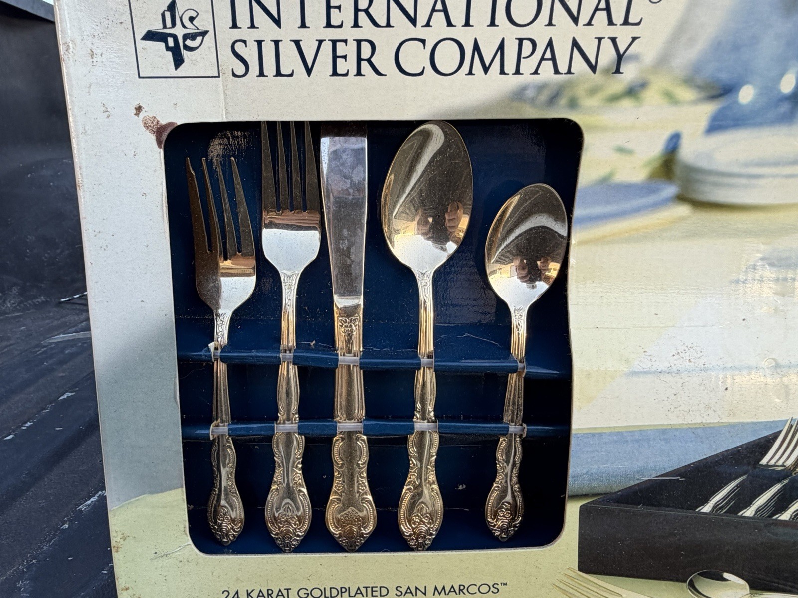 65 Piece International Silver Company 24K Gold Plated San Marcos Flatware Set