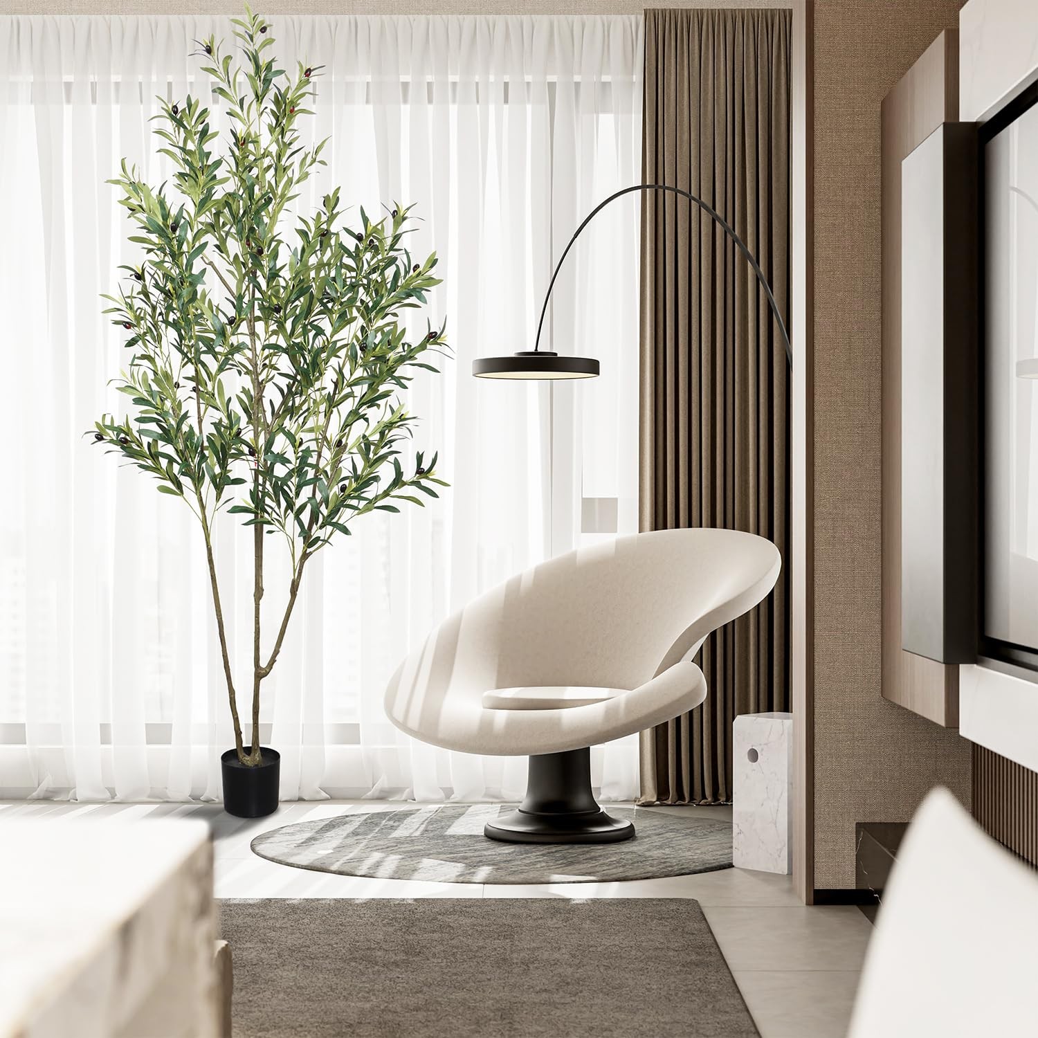 6.56ft Artificial Olive Tree, Faux Olive Tree with Lifelike Fruits, 78.74in Fake Olive Tree with Sturdy Plastic Pot, Artificial Plants for Office Home Living Room Indoor Outdoor Decor Perfect Dimensions: Standing at an elegant height of 6.56 feet, this artificial olive tree is a charming addition to any space. Each branch and fruit is meticulously crafted, offering a full-bodied appearance that rivals its natural counterpart. This stunning tree brings a touch of nature into your living environment, enhancing comfort while adding an artistic touch to your decor. Whether placed in a home, office, or studio, it serves as a striking focal point that elevates the overall aesthetic. Realistic and Adjustable: Experience the perfect blend of realism and versatility with our lifelike faux olive tree. Its adjustable branches make it easy to customize for any living space. Crafted with a sturdy metal frame and soft metal wire in the trunk and leaves, it offers exceptional durability, allowing you to reshape it as needed without worrying about damage. No Maintenance Required: Enjoy the beauty of an evergreen with our 6.56-foot faux olive tree! Revel in its elegance without the need for sunlight, watering, or pruning—simply wipe it clean to maintain its lasting charm. Safe and High-Quality Materials: Our faux olive tree is made from durable, eco-friendly silk for a realistic look that’s both waterproof and safe. The sturdy base prevents tipping, ensuring safety around children and pets. For the best visual impact, we recommend placing it in a larger decorative planter. Perfect Decor: This 6.56-foot artificial olive tree is ideal for enhancing a variety of spaces, including living rooms, bedrooms, reading nooks, dining areas, and offices. Its versatility also makes it suitable for entryways, patios, bookstores, coffee shops, and other commercial settings. Perfect for special occasions like Christmas, Thanksgiving, or everyday decor, it effortlessly elevates any environment.