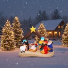 Features: Share with others: You can share lighted outdoor nativity set with your family members, partner and colleagues, they will feel satisfied when they receive this giant decor. Bright garden decor: Large outdoor nativity scene decor is equipped with bright LED lights inside and are lit up at night for a stunning visual experience. Specifications: Material: 190T polyester Color: bright color Size: 6.5 ft in length Package includes: 1 x Christmas inflatable nativity scene decoration Notes: Manual measurement, please allow slight errors on size. The color may exist a slight difference due to different screen displays. The built-in blower is under the product, so please avoid rainwater entering, in rainy days, please take back the product or cover it to avoid damage. What You Will Receive: You will receive 1 piece of Christmas inflatable nativity scene decoration, featuring Baby Jesus, Mary, Joseph, the Three Wise Men, and a sheep under a stable with a glowing star. The set comes equipped with extension and fastening ropes, ground stakes, a built-in sandbag, and a plug with UL certification, ensuring quick setup and secure outdoor or indoor display Perfect Size & Bright Lights: This Christmas inflatable decor measures about 6.5 ft long, large enough to create a stunning focal point in your yard, garden. Built-in bright LED lights make the nativity scene vivid and eye-catching at night, spreading a warm and festive glow throughout your holiday setting Weather Resistant Material: Made of quality 190T polyester fabric, this Christmas inflatable nativity scene is strong, tear-resistant, and waterproof, ensuring it can withstand wind, rain, and snow. Keep the decoration looking bright and inflated throughout the holiday season, perfect for both indoor and outdoor Easy Setup & Stable Design: Inflatable Christmas nativity scene can be quickly inflated within minutes using the built-in blower. Simply plug it in, and it will automatically expand into shape Wide Application: Inflatable Christmas decoration is suitable for many occasions, such as Jesus themed party decorations, Christmas parties, indoor and outdoor party props, nativity patio decorations and so on, adding a strong festive atmosphere to you