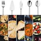 * QUALITY MATERIAL: 65pcs flatware set is made of high quality 18/0 stainless steel which ensures rust resistance and nickel free, High hardness metal won’t bent easily, Healthy and durable for years to come, Dishwasher Safe * SERVICE FOR 12: Comes with 12 Dinner Knives, 12 Dinner Forks, 12 Dinner Spoons, 12 Teaspoons, 12 Salad forks, Additional 5-piece service set includes Serving Slotted Spoon, Serving Spoon, Serving Fork, Pie Server and Butter Knife * HAMMERED DESIGN: Beautiful hammer design creating a luxurious appearance, Modern yet classic, Mirror polish makes these fancy pattern always keep shining, Will not dull, Would match well with your existing plates or other dinnerware * PROPER WEIGHT: These cutlery are of moderate weight, Not too heavy nor too light, Provide a comfortable to hold, and sharp blade makes it easier to cut food, Enhancing the dining experience * MULTI USE:Perfect for your warm family daily use, Nice choice as a gift to your family and friends, Also good for buffets, gatherings, dinner parties, restaurants, weddings, camping, birthday parties