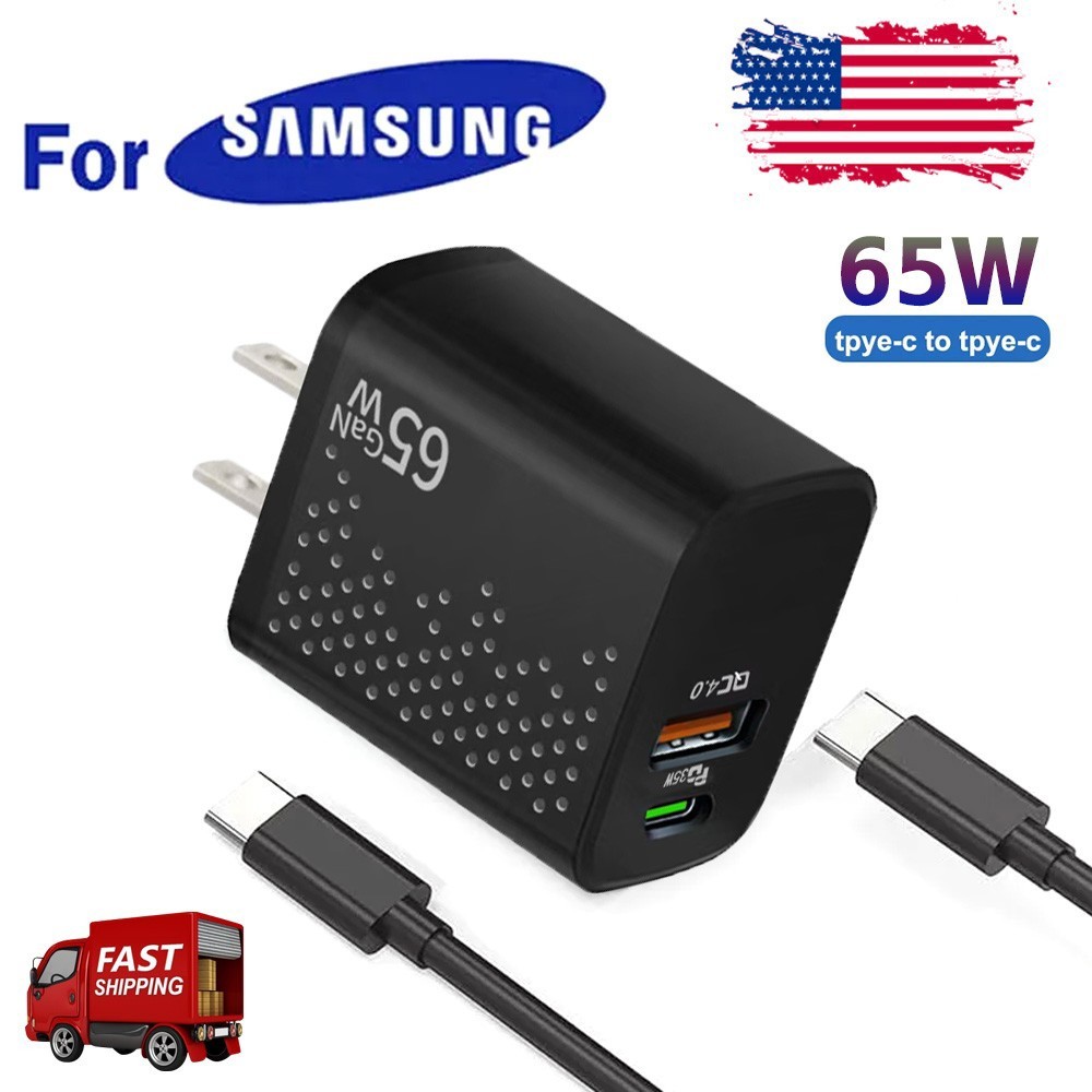 65W PD Power Fast Charger Wall Adapter+USB Cable for Samsung Galaxy S23 S22 S21+ 65W PD Power Fast Charger Wall Adapter+USB Cable for Samsung Galaxy S23 S22 S21+ Power Adapter Duo Super Fast Charging – for speed, safety, stability, and power. The dual-port charger is powerful enough for simultaneous, high-output charging. Designed for a wide range of Android and iOS devices. Unrivaled excellence of the dual port-equipped charger with built-in state-of-the-art technology. General Feature: Features (USB-C) Super Fast Charging max. 25 W, PD 3.0 PPS max. 65 W / (USB-A) AFC,QC max. 15 W / (C+A) 20 W + 15 W Interface USB-C, USB-A Feature: 【Super fast charging】: Our 65W USB C fast charger uses Power Delivery technology to provide the most efficient charging. Charge your For Galaxy S23/S22 Ultra from 0% to 50% in just 20 minutes, faster than other 25W/15W chargers. 【Versatile USB C cable】: The USB-C to USB-C cable lets you charge your phone from any other USB-C power source and transfer files with your Galaxy or any other compatible smartphone or laptop at amazing speeds. 【WIDE COMPATIBILITY】: Our 65W charger is compatible with for Samsung Galaxy S23, S23 Ultra, S23+, S22, S22+, S22 Ultra, Note 10+, Note 10+ 5G, A91 and future compatible devices. Super fast charging max. with for Samsung Galaxy S21/S21 Ultra/ S21+ 5G, S20/S20 Ultra/ S20+/ S20 FE, Note 10/ Note 10 5G, Note 20/ 20 Ultra 5G/ S10 5G, Galaxy Z Fold 3 5G, A90 5G, A80. A70, Book S, Tab S7/S7+/S8/S8+/S8 Ultra. for Google Pixel, Pixel 2, Pixel 3, Pixel XL, Pixel 2XL, Pixel 3XL, Pixel 4XL, Pixel 3A, for LG G7 Thing, G8, G6, G5, Stylo 4, V20, V30, V65, V30S, V40 ThinQ Plus, for Motorola Moto for Samsung Galaxy Tab S7 / S7+ / Tab A series for Samsung Galaxy Buds / Galaxy Watch Known incompatible brands - for Google, for Xiaomi, for OnePlus,For Huawei 【PORTABLE AND CONVENIENT】: Our compact Android phone charger is ideal to take with you on vacation or short trips. Easy to store and carry, it can be charged quickly and easily. Specifications: Product Name: Super Fast Charging 65W USB Type C Wall Charger Features: Super Fast Charging 2.0 max. 65W; PD 3.0 PPS max. 65W Charging Charger Type: Wall chargers Adapter Power Type: AC Wattage: 65 watts Brand Compatibility: Universal Model Compatibility: Most devices with USB Type-C charging capabilities Compatible Devices: Smart Phones, Tablets Charging Interface(s): USB Type C Color: Black Cable Length: 3FT Package Included: 1 x Power Adapter 1 x 3ft fast charging cable Payment Shipping Return Contact us Payment We accept credit/debit cards, Apple Pay, Google Pay and PayPal. Buyer are required to arrange a payment within 72 hours of auction closed. eCheck payments take 3 to 5 business days to clear through PayPal. Our auction payment ID will be provided in payment notification email. Sales tax :6.625% will be collected when : '“Shipped To ” address in NJ. Shipping All orders will be processed within 1~3 business days of a cleared payment. If your order is made on Friday it will ship out on Monday. (Holidays excluded) We ship to all 50 states. We use USPS/Speedpak as our primary shipping service but we may use other carriers at our discretion. If there are any delays please get in touch with us. We DO NOT ship to any address other than the one specified at check out, NO EXCEPTIONS!!! One of the best reasons to shop with us is FREE SHIPPING!!!! ALL ITEMS SHIPPED TO FREIGHT FORWARDING OR INTERNATIONAL MAIL FORWARDING BOXES WILL ONLY BE DELIVERED TO THE ADDRESS REQUESTED UPON CHECKOUT. WE ARE NOT RESPONSIBLE FOR THE FREIGHT FORWARDING OR INTERNATIONAL MAIL FORWARDING COMPANY GETTING THE PACKAGE TO YOU. WE WILL NOT BE HELD LIABLE FOR THE ITEM AFTER WE HAVE DELIVERED IT TO THE CONFIRMED ADDRESS. ALSO, IF THE ITEM LEAVES THE COUNTRY AND IS SENT TO ANY INTERNATIONAL DESTINATION THIS WILL VOID ALL WARRANTIES WITH us!!! We accept credit/debit cards, Apple Pay, Google Pay and PayPal. ››› We are not able to provide an invoice prior to delivery. Once your delivery has taken place please feel free to contact us directly and we will be happy to process your request. ››› eCheck payments take 3 to 5 business days to clear through PayPal. ››› Please pay in 48 hours after you win the item(s).If payment cannot be made in five days,your order(s) will be claimed as unpaid case and the item will be relisted. ››› We are required by law to collect sales tax for all orders shipped within the states.(excluding tax-exempt states) Return All of our items come with a 30-day money-back guarantee!!! If within the 30-day warranty, there is a problem with your order please get in touch with us with the specific reason for return to be given an RMA number. If the product and the original packaging are intact and in good condition, we will cover the return shipping costs,If not, we will charge the 25% restock fee. All items must be returned the exact same way they were received. We pride ourselves on customer service so please get in touch with us before leaving any feedback. Contact us Customer satisfaction is our top priority. Please give us a chance to resolve any issues before posting a feedback. Please contact us with any questions or concerns. Business hours of operation: Monday - Friday : 9:00AM - 6:00PM Eastern Standard Time. Saturday, Sunday and all major USA holidays : Closed.