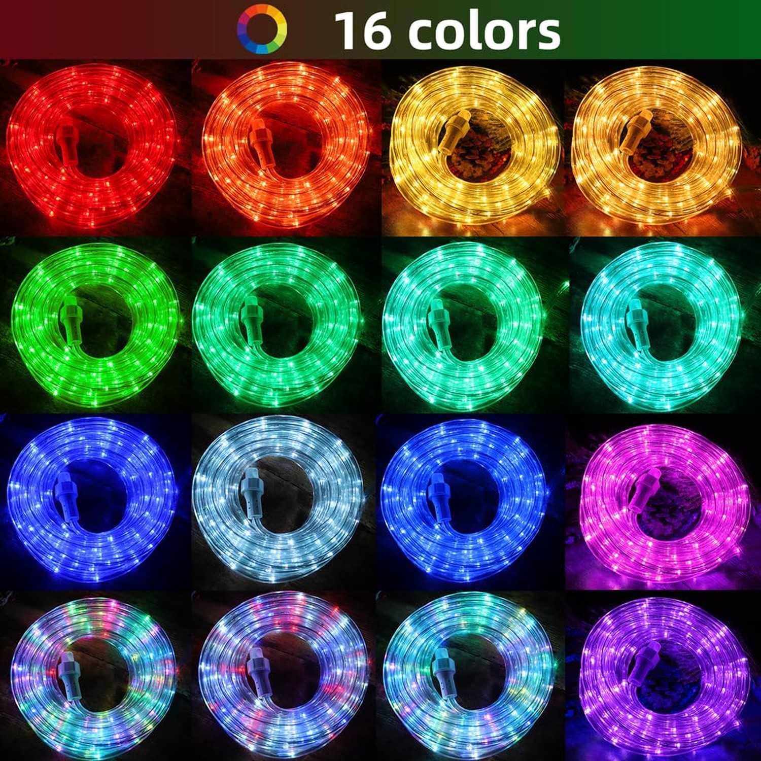 65ft 400 LED Rope Lights for Outside, Color Changing Rope Lights Indoor Outdoor with Remote, 16 Colors Waterproof Christmas Light Outdoor for Deck, Patio, Pool, Camping, Bedroom, Landscape Decorations Product Details Size: 65ft 400led Brand: HuiZhen MPN: YLRL-20-24V UPC: 705146599318 EAN: 0705146599318 Color: color changing Brand: HuiZhen Indoor/Outdoor Usage: Indoor, Outdoor Special Feature: 16 color changing Timer with Remote Light Source Type: LED Power Source: AC Light Color: Multicolor Theme: Christmas, Halloween, Thanksgiving Occasion: Indoor and outdoor ,party,room,christmas,camping Style: Modern Package Dimensions : 11.77 x 10.55 x 3.7 inches; 4.63 Pounds Item model number : YLRL-20-24V Batteries : 1 Lithium Ion batteries required. (included) Date First Available : September 6, 2023 Manufacturer : Linhai Yuliang Electronic Lighting CO.,Ltd Customer Reviews: 4.3 4.3 out of 5 stars 137 ratings Color: color changing Brand: HuiZhen Indoor/Outdoor Usage: Indoor, Outdoor Special Feature: 16 color changing Timer with Remote Light Source Type: LED Power Source: AC Light Color: Multicolor Theme: Christmas, Halloween, Thanksgiving Occasion: Indoor and outdoor ,party,room,christmas,camping Style: Modern Material: Polyvinyl Chloride Controller Type: Remote Control Connectivity Technology: Infrared Number of Light Sources: 400 Voltage: 24 Volts (AC) Included Components: Mounting Clips Number of Items: 1 Control Method: Remote Water Resistance Level: Waterproof Wireless Communication Technology: Infrared, Radio Frequency Number of Batteries: 1 Lithium Ion batteries required. (included) Seasons: All Seasons UPC: 705146599318 Form Factor: Flexible Rope Manufacturer: Linhai Yuliang Electronic Lighting CO.,Ltd Item Weight: 4.62 pounds Package Dimensions: 11.77 x 10.55 x 3.7 inches Item model number: YLRL-20-24V Batteries: 1 Lithium Ion batteries required. (included) Specific Uses: Indoor and outdoor decorations Special Features: 16 color changing Timer with Remote Batteries Included?: Yes Batteries Required?: Yes Bulb Features: Not Dimmable Date First Available: September 6, 2023 Easy Installation and Safe to Use The color changing rope lights come with screws and clamps to secure the rope when hang on the ceiling or wrap around the trees and pillars.led rope lights outdoor waterproof do not get warm for long time lit and two built-in fuses in the power plug as shortcircuit protection,more reassuring and reliable, saving energy and longevity. (NOTE:This color changing rope lights is NOT CONNECTABLE) Pretty 16 Colors & Lighting Modes You can set 8 different lighting modes and 16 colors steady on separately, set different modes to meet your various lighting needs with the remote control, the perfect room ambience, give you an amazing visual experience.Set a timer for 6 or 18 hours with the timer function. Outdoor Rope Lights WaterproofThick transparent round plastic tube, strong flexibility, heat-resistant, anti UV,energy-saving, durable and connectable.With IP65 Rated, Rope lights can be used in outdoor Application: Offers decorative rope lights for outside for wedding ,party,indoor room,outdoor camping,windows, walkways, patios, gardens, fences, porches, restaurants, clubs, bar etc.High flexibility, temperature sustainability, and UV resistance CUSTOMER SATISFACTION MONEY-BACK GUARANTEE:For any reason you're not SATISFIED with the led rope lights, please let us know and our customer service team will help you RETURN OR REFUND. Color changing Rope Lights Feature: 1.Clear PVC tube rope lights. 2.Led Rope Light can be bent into various shape easily and fit for outdoor camping ,wedding,garden,pool,party,Landscape, illuminate deck stairs, crown molding, bedroom, boat etc decoration. 3.Energy-Saving and Long Life outdoor rope lightS. 4.High Flexibility, Temperature Sustainability, and UV Resistance . Specs: 1.Length: 65ft/20m ;lead wire: 9.8ft 2.Color: color changing with remote 3.LED Quantity: 20 Leds/M 4.Rated Lifespan: 50000h 5.Working Temperature: -20~50℃ 6.Voltage: 24V 7.Every Led Power: 0.04W Package Includes: 1x Rope Light Mounting Clips Note: 100% SATISFACTION GUARANTEE! For any reason you're not 100% SATISFIED with the color changing rope light, please let us know and our customer service team will help you RETURN OR FULL REFUND.