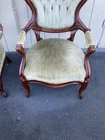 Item Description- pair of Victorian furniture armchairs. They are tight and sturdy and in good condition. The one seat does need some more foam cushion on the seat as per picture. WE SHIP ANYWHERE IN THE USA. IF YOU NEED A HOME DELIVERY QUOTE EMAIL US YOUR ZIP CODE. THE EBAY SITE IS SOMETIMES BROKEN AND WILL NOT LET YOU PURCHASE AN ITEM SAYING WE DO NOT SHIP TO YOUR LOCATION. THE WORK AROUND IS TO MAKE AN OFFER FOR THE AMOUNT STATED ON THE LISTING THEN WAIT FOR ME TO INVOICE YOU BEFORE TRYING TO PAY. SHOWROOM NUMBER 609 261 0602 Age- circa 1980 Size-26"W x 30"D x 45"H Seat 18"H This item can be packaged, insured and shipped via freight directly to your home . Please ask for a home delivery quote before purchasing this item.