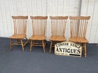 Item Description- Set of 4 solid oak dining chairs. They are all very comfortable and tight and sturdy and in very good condition. Age- circa 1990 Size- 21"W x 23"D x 42"H Seat 18"H This item can be packaged, insured and shipped via freight directly to your home. Please ask for a home delivery quote before purchasing this item. SHIPPING: Center Stage does our own deliveries to New York, Pennsylvania and New Jersey including the New York city and Philadelphia area every 2-4 weeks at very reasonable rates. For a delivery quote please email us with a city and zip code. WE SHIP ANYWHERE IN THE USA. IF YOU NEED A HOME DELIVERY QUOTE EMAIL US YOUR ZIP CODE. THE EBAY SITE IS SOMETIMES BROKEN AND WILL NOT LET YOU PURCHASE AN ITEM SAYING WE DO NOT SHIP TO YOUR LOCATION. THE WORK AROUND IS TO MAKE AN OFFER FOR THE AMOUNT STATED ON THE LISTING THEN WAIT FOR ME TO INVOICE YOU BEFORE TRYING TO PAY. SHOWROOM NUMBER 609 261 0602. BUYER IS RESPONSIBLE TO PAY SHIPPING COSTS ON ALL ITEMS! If you need home delivery email us with your zip code for a quote. Large items or those over 100 lbs. will need freight shipping and we are happy to provide a free quote but you will pay the shipper directly. Expect delivery times on these items to be approx. 2-6 weeks depending on your location. All local deliveries within 50 miles and to NYC are done by Center Stage Antiques. If you are picking up from our store you will need to contact us with a pick up time. NJ residents and buyers picking up are subject to NJ sales tax. Center Stage Antiques has been at its current location for 30 years, selling high quality used estate furnishings at a fraction of the cost. All items are sold in their original condition and ready to place in your home. If you have any specific questions regarding the condition of an item please email us before bidding. We are a small family business who do everything ourselves including packaging and local deliveries.