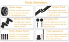 SPECIFICATIONS: Roller Material:Carbon Steel Track Material: Aluminum Maximum load-bearing capacity of a single door: 330lbs (150kg) Suit able for door thickness: From 1 3/16" to 2"(3cm-5cm ) Suitable for door width: 36''-40'' Warranty period: 10 ye ars warranty FEATURES: 【Durable & Safe 】 High quality barn door hardware kit, Pre mium nylon roller wheel, Gcr15 roller bearing, High strength industrial grade track, Can easily hold 330bls loads 【Advantage】 ① Spring Door Stops, reduce noise and extend life ② Pre- drilled rails, steel bearings ③ N ew design connection s yste m , Connect Rail stable 【Wide Applicability】 The rustic wooden sliding door fitting are very easily to decorate and suitable for bedroom, study room, dressing room, kitchen, closet, cabinet, farmland etc 【100% Q uality Warranty 】 We offer 1 0 ye ars warranty.Any questions, please contact us First, we will re ply you within 24 hou rs. 【 Easy to install 】 --- Pre-drilled rails ,step by step installation manual,professional after-sales customer service help you install easily. ACCRSSORIES DETAILS: 1.Carbon Steel Roller Super load-bearing capacity,inner nylon wheels, will not wear the track when rolling. 2.Unique Spring Door Stops T he spring design door stopper c an no t only reduce sound during sliding your door, also extend the life of the k it. 3.Anti-jump Disk M ounted on the top of the door, prevent the door from popping out of the track during movement. 4.Adjustable Screw : The roller screws can be adjusted freely in any size within the door thickness from 1 3/16" to 2"(3cm-5cm ).