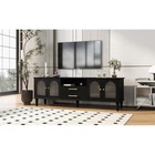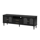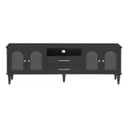 68.9'' Retro TV Stand for TVs Up to 75 Inches, Entertainment Center with Fluted Glass Doors & 5 Solid Wood Legs, Black (Old SKU: N724P198468B) 📺 68.9'' Retro TV Stand | Fits TVs Up to 75'' | Fluted Glass Doors | 5 Solid Wood Legs | Black | 1-Year Warranty & 30-Day Free Return 📺 Elevate your living room with this retro-inspired TV stand that seamlessly blends vintage charm with modern functionality—perfect as a centerpiece for any space, from compact urban apartments to spacious family rooms. Designed to accommodate TVs up to 75 inches, this entertainment center features fluted glass doors, five solid wood legs, and ample storage, making it both aesthetically pleasing and highly practical for organizing your media essentials. Crafted from high-quality MDF with solid wood pine legs, this TV stand boasts durability, thoughtful details like cable management, and an anti-tip device for safety. With labeled parts and illustrated instructions, assembly is easy—even for beginners—making it a hassle-free addition to your home. Fits TVs Up to 75 Inches & Spacious Tabletop : One of the standout features of this retro TV stand is its ability to support large TVs up to 75 inches, making it versatile for various living spaces. The sturdy, spacious top surface (with a 100 lbs weight capacity) provides plenty of room for your TV, plus decorative items like vases, picture frames, or potted plants to personalize your space. Ample Storage with Drawers & Cabinets : Equipped with 2 drawers and 2 spacious cabinets, this entertainment center offers plenty of hidden storage for items you want to keep out of sight—board games, remote controls, media devices, and other living room essentials. The middle drawer has an interior size of 18.6'' W × 11.25'' D × 3.3'' H, while the side drawer measures 22.5'' W × 14.75'' D × 15.4'' H (each drawer supports up to 25 lbs). The cabinet shelves can hold up to 65 lbs each, perfect for larger items. Durable Construction & Adjustable Legs : Built from high-quality MDF (tabletop and frame) with five solid wood pine legs, this TV stand ensures long-lasting durability and stability. The legs can be adjusted by 0.6 inches, allowing you to level the stand on uneven floors for a perfect fit in your space. The arched cabinet doors with fluted glass add a retro touch while keeping stored items dust-free. Cable Management & Safety Features : A dedicated cable management hole on the back panel lets you neatly route and hide wires from your TV and other electronic devices, keeping your living room clean and organized. The stand also includes an anti-tip device for added safety, preventing accidental tipping and ensuring peace of mind, especially in homes with kids or pets. Easy Assembly with Clear Instructions : All parts, hardware, and illustrated instructions are included in the package. With labeled parts and step-by-step guidance, assembly is quick and easy—we recommend 2-3 people for a smooth setup (full assembly is required). Retro Charm Meets Modern Function : This TV stand combines classic retro design elements—arched doors, fluted glass, and solid wood Roman column legs—with modern functionality, making it a stylish and versatile addition to any living room. Its sleek black finish complements a wide range of decor styles, from vintage to contemporary. Key Details : Old SKU - N724P198468B | Color - Black | Materials - MDF (Tabletop/Frame), Solid Wood Pine (Legs), MDF + Glass (Doors), Metal (Handles) | Assembled Dimensions - 68.80” L × 15.60” W × 23.00” H | Overall Product Size - 68.9” W × 15.7” D × 23” H | Tabletop Thickness - 0.6” | Floor to Bottom Clearance - 6.6” | Product Weight - 75.00 lbs | Package Dimensions - 76.00” L × 20.25” W × 5.75” H | Package Weight - 82.72 lbs | Pieces Included - 1 TV Stand | Maximum TV Size - 75” | Weight Capacities: Top (100 lbs), Drawers (25 lbs each), Shelves (65 lbs each) | Features: Cable Management, Anti-Tip Device, Adjustable Legs (0.6”), 2 Drawers, 2 Cabinets, Fluted Glass Doors | Assembly: Full Assembly Required (2-3 People), Instructions & Hardware Included | Intended Use: Residential Warranty & Risk-Free Return : Shop with complete confidence! This retro TV stand comes with a 1-Year Warranty, covering any manufacturing defects for long-term peace of mind. We also offer a 30-Day Free Return policy—if you’re not fully satisfied with your purchase, simply return it within 30 days for a full refund, no questions asked. Care & Maintenance Tips : 1. To protect the finish, avoid abrasives or household cleaners—dust with a soft, dry cloth. 2. Always use coasters, pads, cloth, or felt to protect the furniture surface, and wipe up spills immediately. 3. Slight chromatic aberration may occur due to lighting differences—we appreciate your understanding. 4. If you receive a damaged item, missing parts, or a defective product, please contact us for support. 5. Manual measurement may have a discrepancy of about 0.8-1.2 inches (2-3cm). Package Includes: 1 × Retro TV Stand (Black), All Necessary Assembly Hardware, Labeled Parts, Illustrated Assembly Instructions, Anti-Tip Device.