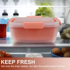 NOTE: !!!!!!!!!!You need to PRESS THE BUCKLES with fingers or the heel of palm to LOCK(Press outward) and UNLOCK (Press inward the lid), with heel of palm is easier, please check with the video to understand more clearly. 【Airtight & Leakproof Berry Containers】The better the air tightness, the better the preservation effect. So, we designed the berry keeper lid with a sealing ring and unique buckle design to be tight and keep food fresh. But it requires you to open and close by PRESSING. 【Durable & Food Fruit Storage Containers】Our refrigerator organizers and storage bins are made of high-quality food-PP material that is BPA-free. Durable and stackable to save space and easy to carry. 【Powerful Berry Drainer Basket】The inner fruit colanders have elongated holes that drain more efficiently than colanders with round filter holes. High feet keep the berry basket promote airflow, so your food will not retain redundant moisture and thus spoil. The raised handle in the middle makes it easier to hold during use Always keep your fruit and vegetables cool, crisp and fresh with this berry drainer basket. 【Multiple Fresh Food Containers】As fruit strainer container with lid, it’s perfect for berries like blueberries, grapes, strawberries, lemons, mangos, avocados, and cherry , cut fruits like watermelons, and small-size vegetables like asparagus, cabbages, brussels sprouts, carrots mushrooms, arugula, asparagus, onions, potatoes, carrots, etc. It is also suitable for meat preservation and storage such as steaks waiting to thaw. 【Also is Food Storage Organizer 】Not only is vegetables/ fruit storage container for fridge to keep produce fresh, the outer box also can be used to dry food in pantry, like cereal, rice, and beans. 【Dishwasher & Microwave & Freezer Safe 】The lettuce keeper for refrigerator is easy to wash with dishwasher, which can help you free of complex housework. They are also microwave and freezer safe to meet your daily use.