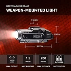 Special Feature Mountable, High Power, Adjustable Light Modes, Durable Color Black Power Source Battery Powered Light Source Type LED Material Aluminum About this item Features white LED with 1,000 lumens; 10,000 candela; 200 meter light distance; run time 1.5 hrs Featuring light only; light & laser; and laser modes; the output of the green laser is <5mW and class is 3R with a wavelength of 510-530nm Safe off feature prevents accidental activation; saves batteries Durable aluminum construction; IPX4 water resistant