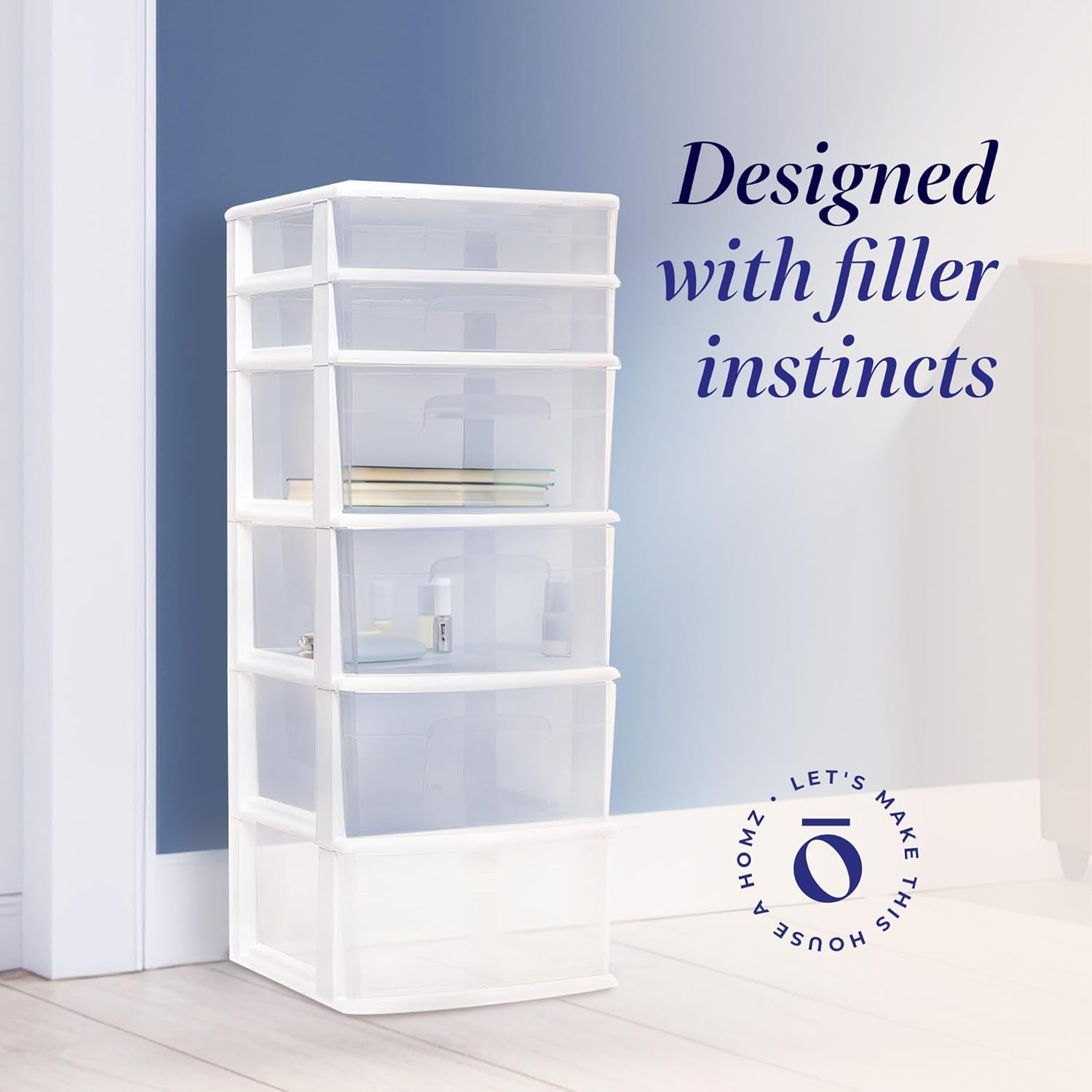This HOMZ storage cart is a game-changer for keeping clutter under control! The six spacious drawers easily hold everything from office supplies to craft materials, and the compact size fits perfectly in tight spaces. I love how smoothly the drawers glide and the clear plastic makes it simple to find what I need. The sleek white frame blends with any decor, and the sturdy construction feels durable without being bulky. Now my desk area looks clean and organized—no more digging through random piles! Perfect for anyone who needs extra storage without sacrificing style.