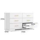 Description Product Features Large storage space with six drawers The design with handles makes the appearance more beautiful This storage unit is made with engineered wood (MDF/particleboard) and Decorative Laminate Wooden white six drawer cabinet This dressing cabinet makes it easy for you to blend into a rural style. Whether in the guest room or children's bedroom, this warm and cozy item complements various environments The surface of this dressing table has a universal appeal, which is really captivating. Matte white hardware adds a touch of modern style to the appearance Dresses and wardrobes are excellent furniture for storing clothes, sheets, and other essentials Required components: including easy to follow instructions and hardware. A screwdriver and hammer are required for assembly (not included) Package Includes: 1 x Dresser Note: 1. Please allow 0-2 cm error due to manual measurement. Thanks for your understanding. 2. Monitors are not calibrated same, item color displayed in photos may be showing slightly different from the real object. Please take the real one as standard. 3. Please kindly note that this product needs to be assembled by yourself.