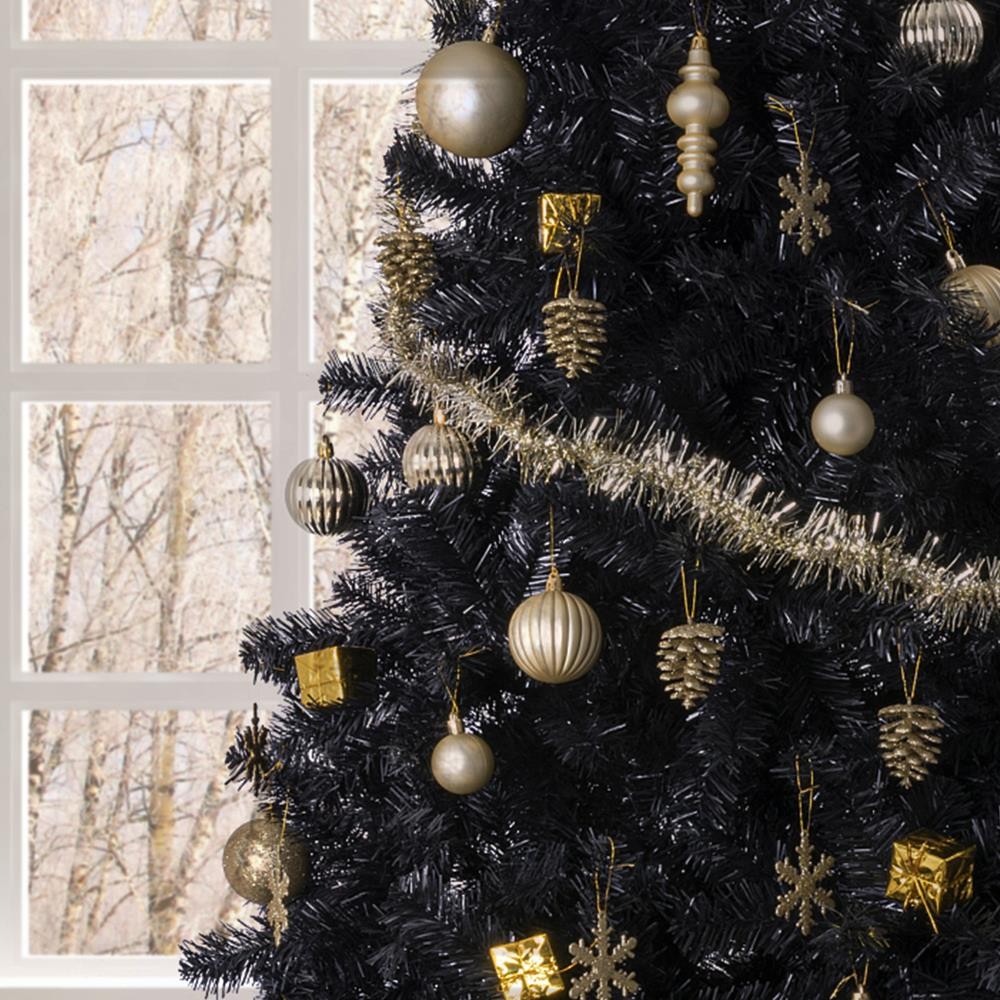 $ 543.846 ft. Pre-Lit Tinsel Collection Black Tree with Clear Lights, Plug-In