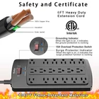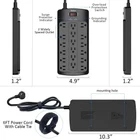 Specifications: Input Voltage: 100-240VAC; 60HZ Max.Current: 15A Max.Power Rating: 1875W Cord Length: 6 Ft; Item Dimensions: 10.3*4.9*1.2 in; Package list: 1 x Surge Protector Power Strip with usb Port 1 x Instruction manual 1 x Paper Box Notice: Do not exceed the total rating or it may cause damage to the unit and fire hazards. Power Strip with 18 Outlets:18AC outlets power strip with 2 widely spacing AC outlets (2 inches) and 6 feet Flat Plug Heavy Duty power extension cord(1875W/15A), surge protector (2100 Joules)with overload protection protects against spikes and fluctuations. 6 Feet extension cord with Flat Plug and Cable Ties: 6 Ft Right Angled Flat Plug power cord makes it more flexible ,Reusable Fastening Cable Ties Can tie up the unused cord and make it better organized. 18 AC Surge Protector Outlets: The 3 level complementary Surge Protector Circuit which composed of TVS (transient voltage suppressor), MOV (metal oxide varistor), GDT (gas discharge tube), with minimum 2100 Joules energy absorbing capacity, could protect your devices much more quickly and reliably than other brand’s 1 level MOV Surge Protection Circuits. Safety and Certificate: ETL safety certified, with extension cord and other major components certified by UL. The over current protection switch limits the power strip's working current to certain setting, so it will not get hot during usage. Environmental protection and fire-resistance PC shell with flame retardant at 1382℉ makes it more durable and longer lifetime. Our After Sale Service: ETL Certified, Our friendly and reliable customer service will respond to you within 24 hours. You can purchase with confidence, with our 30-day return and 12-month warranty.