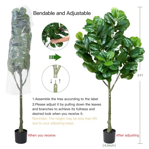 Return Policy Fast Delivery Trusted seller Artificial Fiddle Leaf Fig Tree Set of 2, 6 feet Large Faux Tree with 116 Fiddle Leaves, Decorative Green Tall Fake Ficus Lyrata Silk Tree Plant in Pot for Living Room Bedroom Home Decor 104 Product Description 【Realistic Appearance】This 6 feet artificial fiddle leaf fig tree have a realistic natural looking, with one main trunk and several branches, It contains 116 decorative faux fiddle leaves to form an high density spread of green. The clear texture and vivid color, truly replicating the look of a real fiddle leaf fig tree. The simulated moss in pot adds more real touch to this faux fig tree. It’s a perfect faux ficus lyrata tree to bring a sense of energy, harmony, and freshness to your home or office. 【Sturdy and Adjustable】 Packed with plastic bag and shipped in carton, the fake fiddle leaf fig tree may come compressed and require some adjustment when you get it out from the box. Our artificial tree is inserted with soft metal wires, you can bend and adjust its branches to achieve its fullness and desired look. You can curve them slightly to add a more realistic look. The thick trunk makes the tree stand sturdy. 【Premium Quality Material】The artificial fiddle fig tree truck is made of durable and premium plastic material. The fiddle fig leaves are made by rubber silk fabric, real touch, waterproof, eco-friendly. The black nursery pot is made of hard PP material with cement poured inside which to prevent children, pets knock it down. 【Free Maintenance】Always forget to water your lovely tree, tired of dead tree? Try these faux tree! You don't need to water it or worry about the dead trees. It looks full and fresh every day. You will love it without the added maintenance of a live plant. If the artificial tree becomes dusty, simply wipe it off with a damp cloth or duster. This fiddle leaf fig tree will retain its height, color, and shape for years without the need for pruning and shaping to ensure that it remains aesthetically pleg. 【All Year Round Decor】This fiddle leaf fig artificial tree is 6 feet tall from the bottom of top. This decorative artificial tree will add color and enhance the look of your room. It’s a perfect all year round home decor for living room, bedroom, bathroom, home office, shop, restaurant, parties, wedding ceremonies etc. Shipping Returns Payment Shipping Shipping is FREE to all addresses other than APO/PO boxes in the lower 48 states. All our stock ships from US-based warehouses. Shipped via USPS or UPS (depending on location and package weight) Unless stated otherwise, all orders will ship within 24-72 hours of your payment being processed. Check our feedback to see the great reviews of FAST shipping we offer. Returns Seller does not accept returns Payment We currently accept payment via eBay managed payments only. Once payment is cleared, we will dispatch your shipment within 1-3 business days. Please refer to the "Shipping" tab for more information regarding shipping speed to your destination.