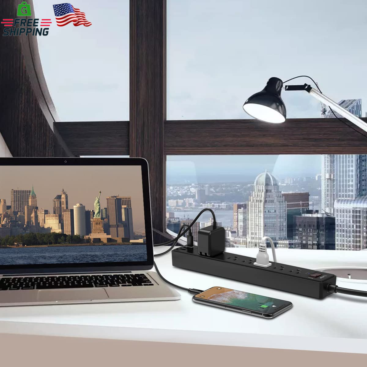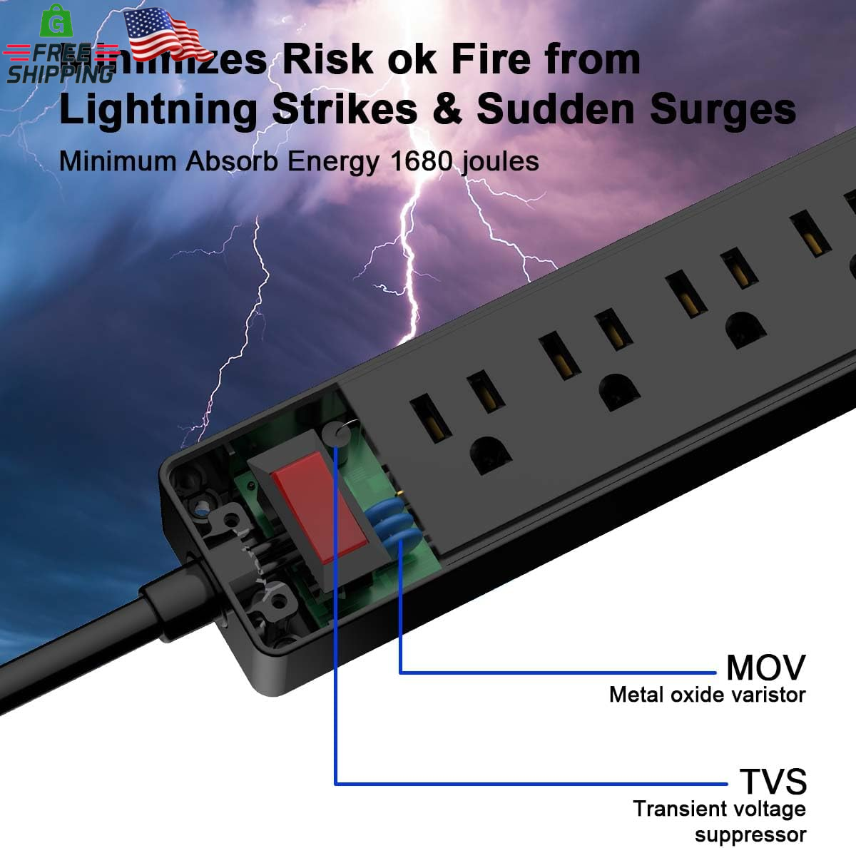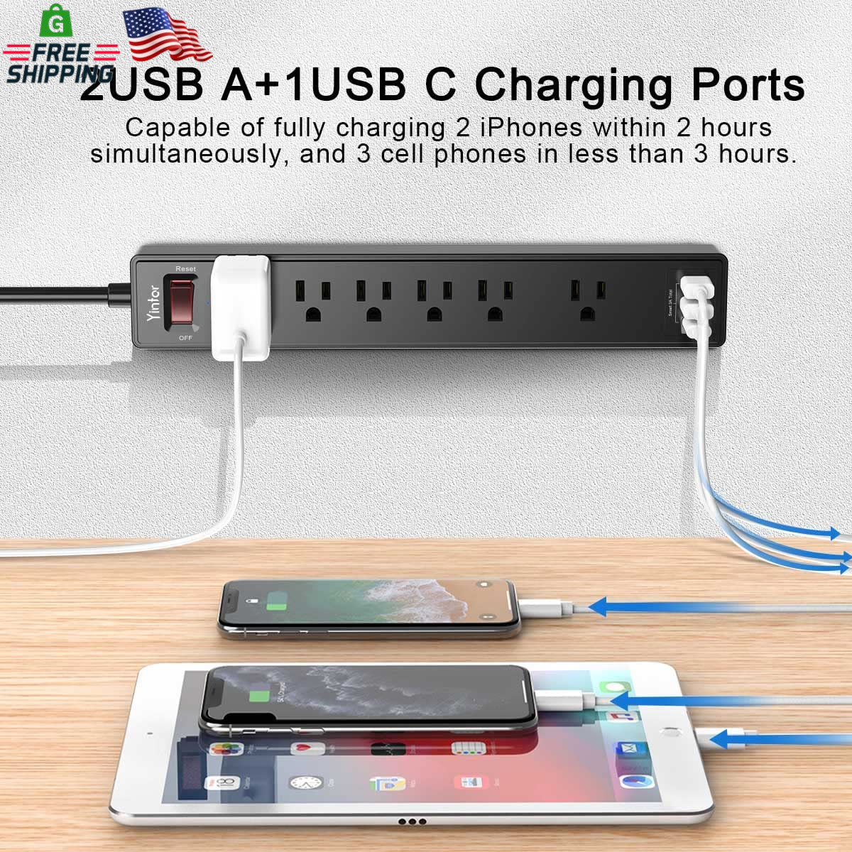 Store New Arrivals Add to Favorite View Feedback Contact 6Ft Power Strip Surge Protector - Yintar Extension Cord with 6 AC Outlets and 3 USB Ports for for Home, Office, Dorm Essentials, 1680 Joules, ETL Listed, (Black) Description Item model number PW-919 Color Black Product Dimensions 11.59 x 1.89 x 1.14 inches Item Weight 11.6 ounces Total Power Outlets 6 Voltage 125 Volts Manufacturer Yintar Special Feature On And Off Switch, Surge Protection, Usb Slot Brand Yintar Size 6 Ft Power Strip with 6 Outlets & 3USB Ports: 6 AC Surge protector outlets(1680 Joules) including 1 Widely Spaced Outlet, 2 USB A Ports & 1 USB C Port (5V/3.0A, 15W) , 6 feet power cord (1250W/10A), Surge protector indicator and 10A Overload Protector switch protects against spikes and fluctuations.Wide range voltage design, can be used on 120v to 240v circuit. Smart Charging USB Ports: Build in smart charging technology, Each USB A port features 2.4A Max output. USB C charging port features 3A MAX., 3 USB ports ( Total 5V/3.0A/15W) can charge almost any USB device (smart phone, tablet, Amazon Kindle, fire stick, e-reader, blue tooth headphones, portable speaker etc). Surge Protector outlet: The 6 AC outlets provide surge protector against electrical spikes. Three complementary Surge Protection Circuits, TVS (transient voltage clamp) MOV(metal oxide varistor) GDT(gas discharge tube), with response speed less than 1Ns, and minimum energy-absorbing capacity of 1680 Joules, its response time is much shorter than the single MOV surge protector circuit, It truly provides great protection of your precious plugged-in devices. 6 Feet Flat Plug Power cord with Cable Ties: - 6 Ft Extension Cord makes it more flexible ,Reusable Fastening Cable Ties Can tie up the unused cord and make it better organized. the Mounting hole at the back allows this wall mount power strip to be securely installed in various applications, such as wall mounts, floor mounts, workbenches, under counters & more. Our After Sale Service: Our friendly and reliable customer service will respond to you within 24 hours. You can purchase with confidence, with our 30-day return and 12-month replacement. Product description Yintar 6 Feet Surge Protector Power Strip with 6 AC Outlets and 3 USB(2U1C) Ports Specification: Input Voltage: 120-240VAC; 60HZ Max.Current: 10A Max.Power Rating: 1250W USB Port Output: DC 5V, Total 3A Surge Protector Rating: 1680 Joules Yintar Surge Protector Power Strip with Heavy Duty 6ft Extension Long Cord 1680 Joules Surge Pretector Power Strip with 6 AC Outlets and 3 USB Charging Ports 1 Special design widely spacing AC outlets(1.8 inches) for large adapters and 5 standard spacing outlets, 6 feet power cord (1250W/10A), Surge protector indicator and 10A Overload Protector switch protects against spikes and fluctuations. This USB charger will detect your devices automatically and deliver the fastest charge speed up to 2.4A Max Each Port , 2U1C USB ports ( Total 5V/3.0A/15W) can charge almost any USB device (smart phone, tablet, e-reader, blue tooth headphones etc). 1 Special widely spacing AC outlets and 5 standard spacing outlets 3 USB(2U1C) Charging Ports Cord Length: 6 Feet Item Dimensions:11.6*1.9*1.2 inches Smart Charging USB Ports Build in smart charging technology, This USB charger will detect your devices automatically and deliver the fastest charge speed up to 2.4A ( 5V/2.4 Max Each Port ), 3 USB(2U1C) ports ( Total 5V/3.0A/15W) can charge almost any USB device (smart phone, tablet, Amazon Kindle, fire stick, e-reader, blue tooth headphones, portable speaker etc). Widely Spaced Outlet 1 Special Design Widely Spacing AC Outlets (1.8 inches) For Large Adapters And 5 Standard Spacing Outlets. Three Complementary Surge Protection Circuits 6 AC Surge protector outlets(1680 Joules), 6 feet power cord (1250W/10A), Surge protector indicator and 10A Overload Protector switch protects against spikes and fluctuations.Wide range voltage design, can be used on 120v to 240v circuit . 45° plug design is more convenient to use The 45° plug design makes it possible not to interfere with your simultaneous use of other devices, which brings the best experience. Three complementary Surge Protection Circuits The 6 AC outlets provide surge protector against electrical spikes. TVS (transient voltage clamp) MOV(metal oxide varistor) GDT(gas discharge tube), with response speed less than 1Ns, and minimum energy-absorbing capacity of 1680 Joules, its response time is much shorter than the single MOV surge protector circuit, It truly provides great protection of your precious plugged-in devices. The mounting hole design makes it useful in more setting Mounting Method 1. Measure the distance between the 2 keyhole slots with the same direction on the back of the power strip. 2. Punch 2 holes on the baseboard with the distance you just measured and insert two self-tapping screws. 3. Put the power strip into the screws and then pull it down a little bit. Please ensure that the screws slide into the smaller holes. ABOUT US We offer the best prices around on high quality products. Our E-store includes media such as books, movies, music and games while offering electronics, toys, sporting apparel, clothing, tools, general home, garden items and more. SHIPPING We are always working hard to ensure your package arrives as soon as possible. Please understand that some factors like weather, high postal traffic, and the performance of shipping companies are outside of our control. We offer free shipping to the lower 48 states and ship within 2 business days of payment, usually sooner. We do not accept P.O. Boxes. Please provide a physical address. For shipping outside of the continental USA, we only use eBay's Global Shipping Program.The item is shipped to KY and then sent to the rest of the world. International customers are responsible for all duties and taxes. Continue to check out in order to calculate costs for shipping the item to your country. Messages regard