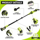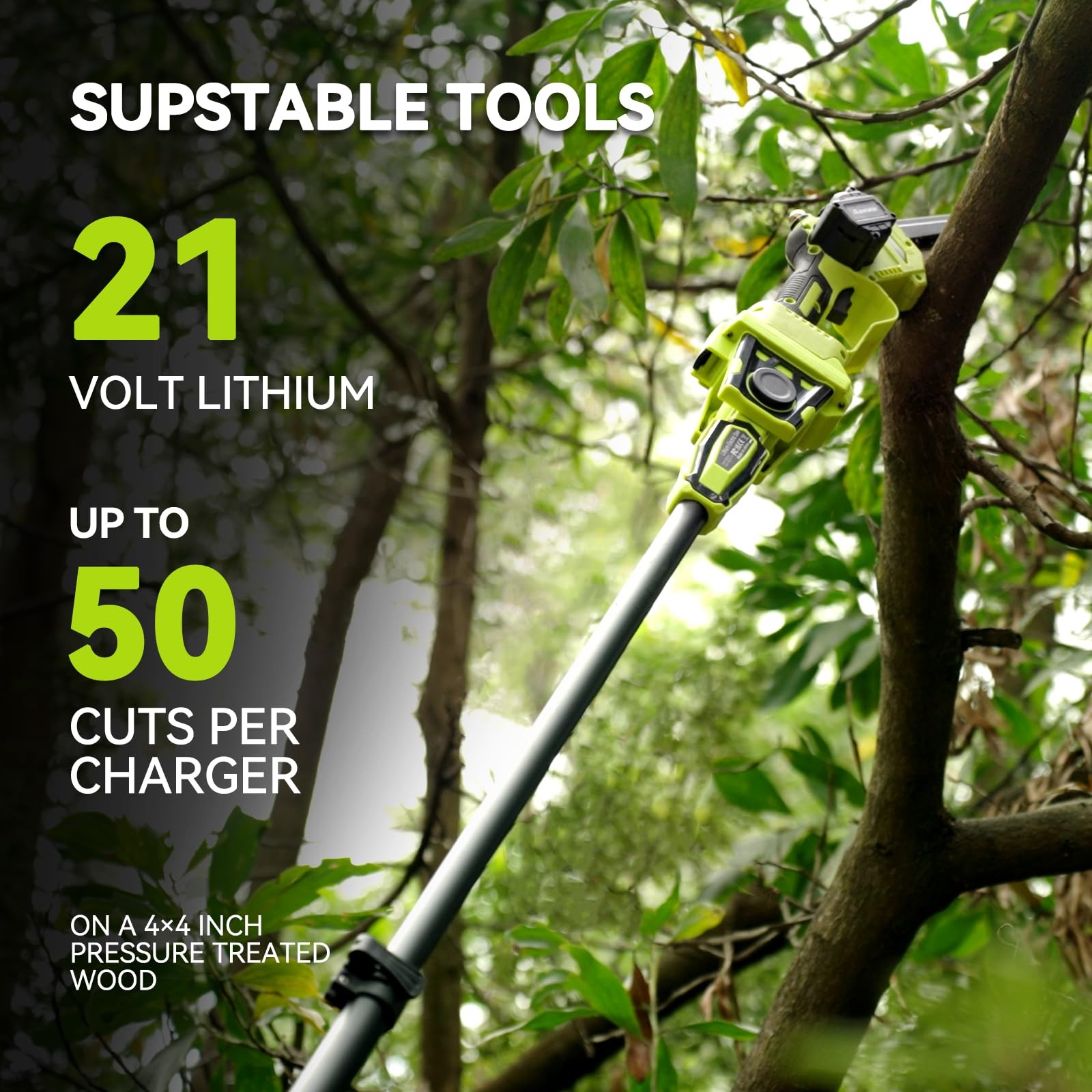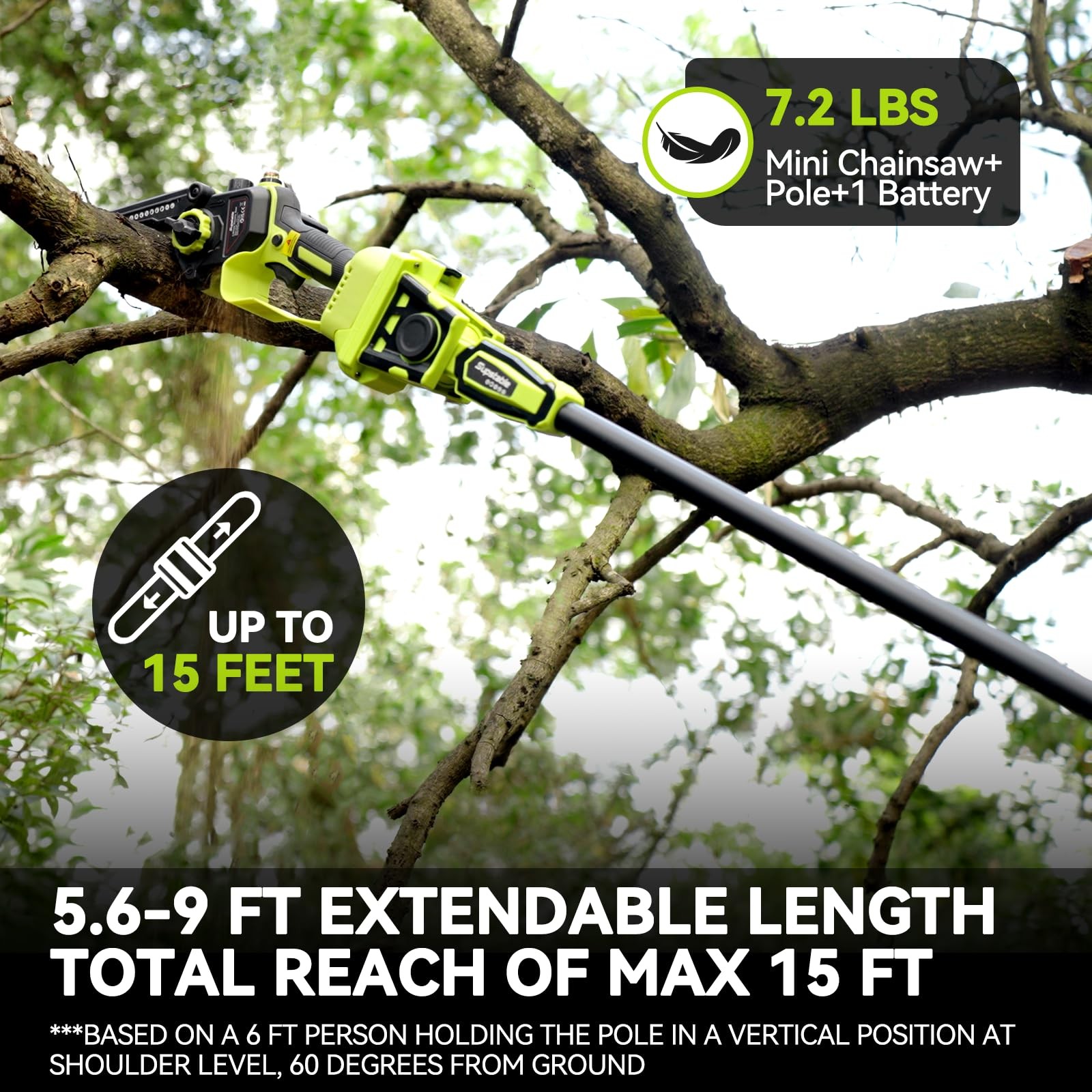 Introducing the Ultimate 2-in-1 Solution: Your All-Terrain Tree Trimming Powerhouse! Tame unruly branches effortlessly with our versatile electric chainsaw cordless that transforms from a precision battery powered chainsaw into an extended-reach chain saw with extension pole in seconds! Engineered as the ultimate electric saw for tree branches, this dual-purpose dynamo combines the power of a handheld brushless motor with the reach of professional pole chainsaws for tree trimming. No more precarious ladders or multiple tools! As a tree trimmers long handle pruner, its carbon fiber telescopic pole extends to 9 feet, letting you safely trim high limbs while standing firmly on the ground. Switch seamlessly to the lightweight handheld mode for low-level pruning – all powered by twin 4.0Ah batteries delivering 60+ cuts per charge. Experience relentless 19.6 ft/s cutting speed with 6-inch capacity, slicing through tough branches like butter. Designed for everyone from DIYers to seniors, this battery powered pole saw features game-changing conveniences: tool-free chain tensioning, 180° rotating head for angled cuts, and safety dual-lock activation. Weighing just 7.2 lbs at full extension, it’s your agile partner for gardens, campsites, and storm cleanup. Why choose between power and reach? Own the all-in-one tree trimmers long handle pruner that masters every challenge – because great landscaping shouldn’t require an arsenal. Versatile 2-in-1 Pole Saw & Chainsaw: The ultimate trimming tool for all your needs! Easily detachable, the electric pole saw battery powered extends for high-altitude work, while the handheld mini chainsaw coldless is perfect for low-altitude tasks. Whether you're pruning trees or hedges, this all-in-one solution makes gardening effortless Long-Lasting Battery for Extended Work Time: With two powerful 4.0Ah batteries, our tree saw with pole delivers up to 1 hour of continuous cutting—enough to trim 40-60 branches on a single charge. No constant recharging, just smooth pruning from start to finish Reach New Heights with Ease: Tired of risky climbs? With an extendable pole that reaches up to 9 feet, Pole saw for tree trimming lets you effortlessly trim high branches—no ladder required. The telescoping design ensures adjustable length for tall trees, while the lightweight carbon fiber shaft keeps it easy to handle Consistent Cutting Performance: With a speed of up to 19.6 ft/s, this battery pole saw for tree trimming makes pruning quick, easy, and precise. Its 6-inch cutting capacity handles ough branches in one clean cut, leaving no untidy remnants for a neater finish. The perfect companion for camping, gardening, and outdoor adventures Tool-free Chain Adjustment for convenience: No tools needed! The 2-in-1 electric pole sa mini chainsaw features a hassle-free chain tension system, letting you tighten the chain in seconds. Great for professionals and DIYers alike – keeping your cuts smooth and efficient Adjustable Angle for Maximum Flexibility: The rotating head of cordless pole chain saw battery powered offers ultimate flexibility for trimming branches at different angles. Whether you're tackling overhead limbs or side branches, the adjustable head makes it simple to prune with accuracy and comfort from any position High-Endurance Brushless Motor: Our high-performance electric pole chainsaw delivers stronger cuts, longer life and zero fuss. The brushless motor gives you smooth, efficient power for every task—from pruning branches to shaping shrubs—with no drop in performance Lightweight and Space-saving: Say goodbye to aches and hello to efficient storage! Weighing just 3.4 lbs as a handheld chainsaw and 7.2 lbs as a longest reach electric pole saw. pole saws for tree trimming are designed for anyone to use effortlessly, including women, beginners, and seniors. Operate it single-handedly straight out of the box—no assembly required Advanced Safety Features: Safety first! The cordless tree trimmer pole saw only activates when both the safety switch and power button are pressed simultaneously, preventing accidental starts. We also include Shoulder Strap, protective goggles and anti-cut gloves to ensure your safety while working The Excellent Gift for Any Occasion: This versatile, easy-to-use pole chainsaw cordless makes an ideal gift for loved ones. With multiple certifications (CE/EMC/MD/RDHS) and a low-maintenance design, it's perfect for birthdays, anniversaries, Christmas, or any special occasion