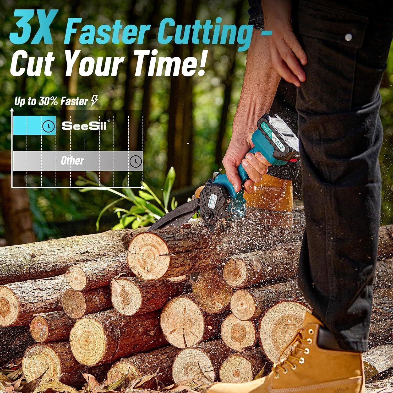 Perfect Companion for Everyday Tasks: Whether you're trimming branches in your garden, cutting firewood for a cozy night, or tackling a DIY project, the 6-inch mini chainsaw is designed to make every task feel effortless. It’s a practical and thoughtful gift for family and friends who love hands-on projects Get the Job Done 3X Faster: No more wasting time on slow, inefficient tools! With its powerful 900W motor and precision-hardened chain, this power chain saw breezes through logs up to 6 inches thick in just seconds—perfect for anyone looking to save time and energy Effortless Control for All Users: Weighing only 2.8 lbs, this small chainsaw is lightweight and easy to handle. Seniors, women, and beginners will appreciate how simple it is to use for pruning branches, shaping bushes, or clearing small logs—no prior experience needed Smooth Cuts Every Time: Say goodbye to frustrating jams or uneven cuts. The automatic chain lubrication system of chain saw keeps the chain running smoothly and prolongs its life, letting you work continuously without interruptions Safety You Can Rely On: Feel confident while you work with electric saw. The dual safety lock prevents accidental starts, while the chain guard protects against debris. The low kickback design adds an extra layer of stability, ensuring safe use for every user, every time Always Ready When You Are: With two long-lasting 21V 2000mAh rechargeable batteries, you’ll have up to 60 minutes of uninterrupted power for even your longest tasks. The fast charger gets you back to work quickly, so you’ll never have to stop mid-project Quiet Operation, Peaceful Work: Enjoy the quiet hum of your mini chainsaw—perfect for early morning or evening tasks without disturbing neighbors or loved ones. It’s the perfect balance of power and peace of mind Power Source Battery Powered Horsepower 900 Watts Item Weight 3.15 Pounds Product Dimensions 3"L x 2"W x 10"H Chain Length 6 Inches Chain Speed 16.5ft/s
