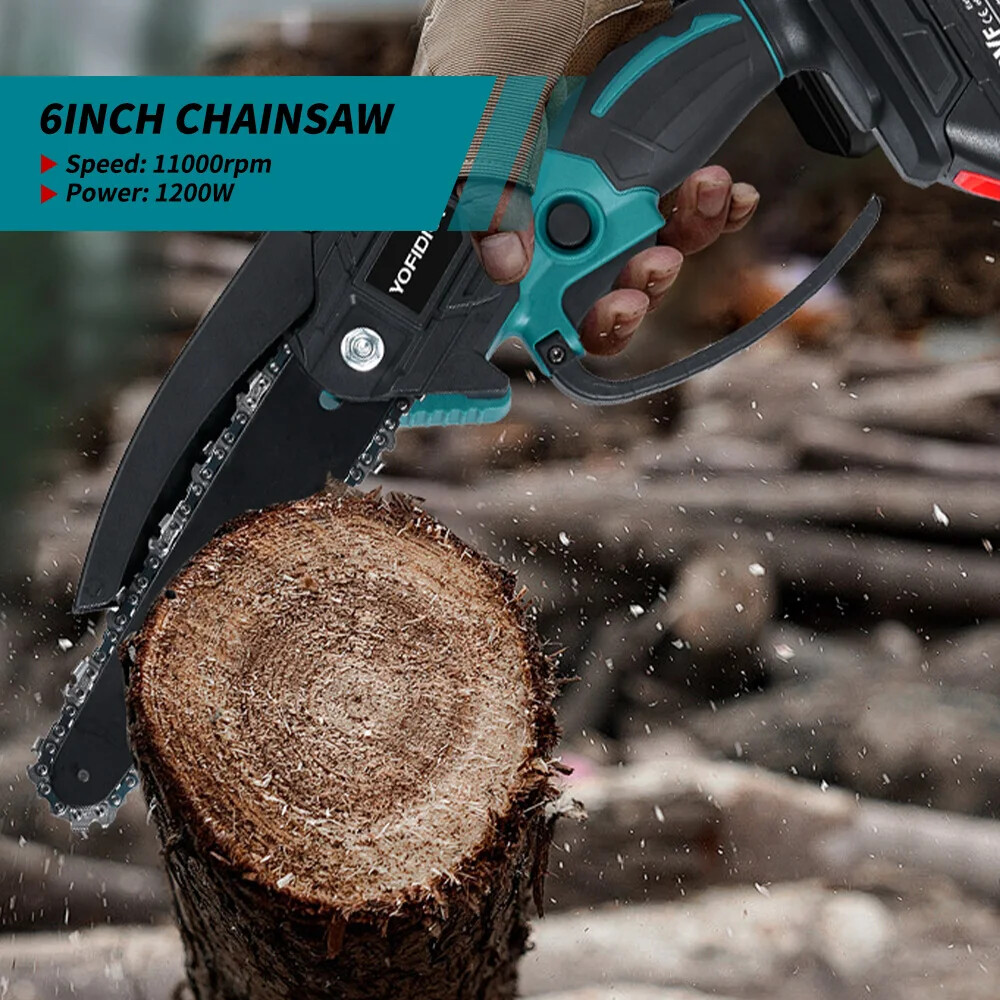 1200W 6 Inch Brushless Electric Chainsaw Cordless Electric Cutting Pruning Chain Saw Garden Tool For 21V 18V Battery Specifications: Name: Electric Chainsaw No-load Speed:11000rpm Chain Cutters:37 Knots Guide Plate Length:6 Inch Battery model: Suitable For 21V 18V Battery Package: 2XBattery Set: 1 X Chainsaw 3 X Chain 2 X Tools 1 X Oil can 1 X Gloves 1 X Goggles 2 X Battery 1 X Charger Features: --Brushless motor, strong power, fast cutting speed, improve efficiency. - Sharp & Strong Chain:High quality alloy chain, wear-resistant and durable, fast and smooth sawing without jamming. - Portable Design:Soft rubber handle, anti-skid and sweat-absorbing. -Widen baffle design, to prevent wood chips from splashing during cutting;Heat dissipation hole design, efficient ventilation and heat dissipation. -- Wide Application:This electric chainsaw has a wide range of uses, can be used for Forest cutting, cutting wood, pruning branches and so on. Adapted to 18V battery: √ compatible for 18V B series lithium battery,such as BL1850B(197285-8),BL1840B(197270-1),BL1830B(197602-2),BL1430B(197618-7),BL1820B(197487-6); √ compatible for BL1850,BL1840,BL1440(196391-6),BL1415(194560-3),BL1815N(196781-3); × NOT compatible for G Series battery such as BL1813G(196663-9) BL1413G(196882-7) BL1415G BL1430G BL1815G and so on × NOT compatible for 18v Ni-CD battery such as 1822(194465-7) Notes: 1.The plug defaults EU/US. If you need other specifications (UK, AU), please contact our customer service in time, and we will add a conversion head for you. 2.Manual measuring, please allow 1 ~ 3 cm error,thank you. 3.Due to the difference between different monitors, the picture may not reflect the actual color of the item. We guarantee the style is the same as shown in the pictures.Please understand, thank you