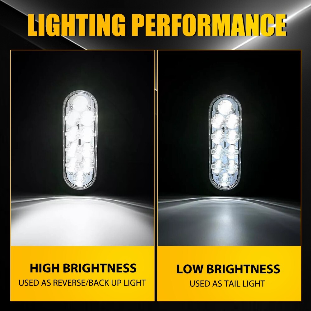 Specification: Light color: White Shell diameter: 6 inches Material: ABS+PC+Rubber+Metal LED quantity: 12LED Voltage: 12v Waterproof grade: IP67 Service life: 50000h+ Features: *Upgraded LED: Each lamp consists of 3030 SMD LED chips with wider lighting angle and better heat dissipation. It is 3 times brighter than other products. *Waterproof: The tail light is highly silicon sealed with an IP67 waterproof rating, which works even under extreme conditions such as rain and snow. *Easy to install: Easy installation with direct replacement, other modifications are not required. *Unique design 6" Oval LED White Light w/ Mounting Bracket For Trailer Tail Light Reverse 4PC M Specification: Light color: White Shell diameter: 6 inches Material: ABS+PC+Rubber+Metal LED quantity: 12LED Voltage: 12v Waterproof grade: IP67 Service life: 50000h+ Features: *Upgraded LED: Each lamp consists of 3030 SMD LED chips with wider lighting angle and better heat dissipation. It is 3 times brighter than other products. *Waterproof: The tail light is highly silicon sealed with an IP67 waterproof rating, which works even under extreme conditions such as rain and snow. *Easy to install: Easy installation with direct replacement, other modifications are not required. *Unique design The groove inside the ring has been upgarded, adding three bumps to make the connection between the ring and the taillight tightly.These help the tailights not to fall out and can be firmly fixed the seal ring installed on the mounting bracket.You don't need to worry about the loose lights or wires anymore! *Connection White wire connects to negative. Red wire connects to white light with high brightness Black wire connects to white light with low brightness *Functions It can be used as running lights, brake lights, taillights and so on?? *Wide application: Universal Fits All vehicles with 12V Power Supply such as car, truck, trailer, Semi Trailer, Semi Trucks, boat, flatbed, bus, lorry, van, caravan, camper, RV Jeep etc. Note: Please check the detail information carefully before purchasing. Your satisfaction is our utmost concern, please feel free to contact us for any questions and concerns. Package Include: 6Inch Tail Lights w/ Mounting Bracket*4 ABOUT US 6" Oval LED White Light w/ Mounting Bracket For Trailer Tail Light Reverse 4PC M Specification: Light color: White Shell diameter: 6 inches Material: ABS+PC+Rubber+Metal LED quantity: 12LED Voltage: 12v Waterproof grade: IP67 Service life: 50000h+ Features: *Upgraded LED: Each lamp consists of 3030 SMD LED chips with wider lighting angle and better heat dissipation. It is 3 times brighter than other products. *Waterproof: The tail light is highly silicon sealed with an IP67 waterproof rating, which works even under extreme conditions such as rain and snow. *Easy to install: Easy installation with direct replacement, other modifications are not required. *Unique design The groove inside the ring has been upgarded, adding three bumps to make the connection between the ring and the taillight tightly.These help the tailights not to fall out and can be firmly fixed the seal ring installed on the mounting bracket.You don't need to worry about the loose lights or wires anymore! *Connection White wire connects to negative. Red wire connects to white light with high brightness Black wire connects to white light with low brightness *Functions It can be used as running lights, brake lights, taillights and so on?? *Wide application: Universal Fits All vehicles with 12V Power Supply such as car, truck, trailer, Semi Trailer, Semi Trucks, boat, flatbed, bus, lorry, van, caravan, camper, RV Jeep etc. Note: Please check the detail information carefully before purchasing. Your satisfaction is our utmost concern, please feel free to contact us for any questions and concerns. Package Include: 6Inch Tail Lights w/ Mounting Bracket*4 FAQ Shipping Returns Contact Us Payment Why swith to LED? LEDs not only give your vehicle a clean, modern look but, with proper use, will outlast any halogen bulb and HID bulb! Low energy draw, high lumen output, and instant on/off LED technology out shines stock bulbs in every way. Which bulbs are used in my vehicle? Check Sylvania automotive lamp replacemnt guide , you can select the year, make, and model of your vehicle, then select the application you want to replace or upgrade from stock. What does CAN Bus mean? CAN Bus means Controller Area Network Bus. This system monitors your vehicle and reports operating conditions. CAN Bus systems are commonly found in European vehicles such as BMW, Audi, Mercedes, Volkswagen, Porsche, and in many American vehicles. While most late model American vehicles have CAN Bus systems, it is always good to check with your vehicle dealer to see which system your vehicle has before purchasing electrical products. When do you need Warning Canceller? Some vehicles with cmplex internal computers(such as Audi,BMW,Jaguar,Mercedes,etc.) might report on-dash errors or flickering on the headlights. The warning canceller fixes the dashboard warning and flickering effect. Bulb Out Dashboard Error: On some vehicles, the dashboard will report as if you have a headlight bulb missing or burnt. It does not affect the headlights functioning, but the light on-dash will be on. The warning canceller fixes the issue. Flickering Issue: This happens when your vehicle does not recognize the new headlights installed. When turning the headlights on, the vehicle's computer does not understand the signal back from the headlights hence thinking they are still off. This triggers the headlight flickering effect. The warning canceller solves this issue. LED Advantages: Very low and efficient energy consumption than halogen bulbs & HID Bulbs Compared with HID bulbs, LED bulbs Light up instantly, no warm up period Low voltage protection, high precision constant current driver chip Longer lifespan than HID and halogen bulbs Light can be controlled easily in color and intensity
