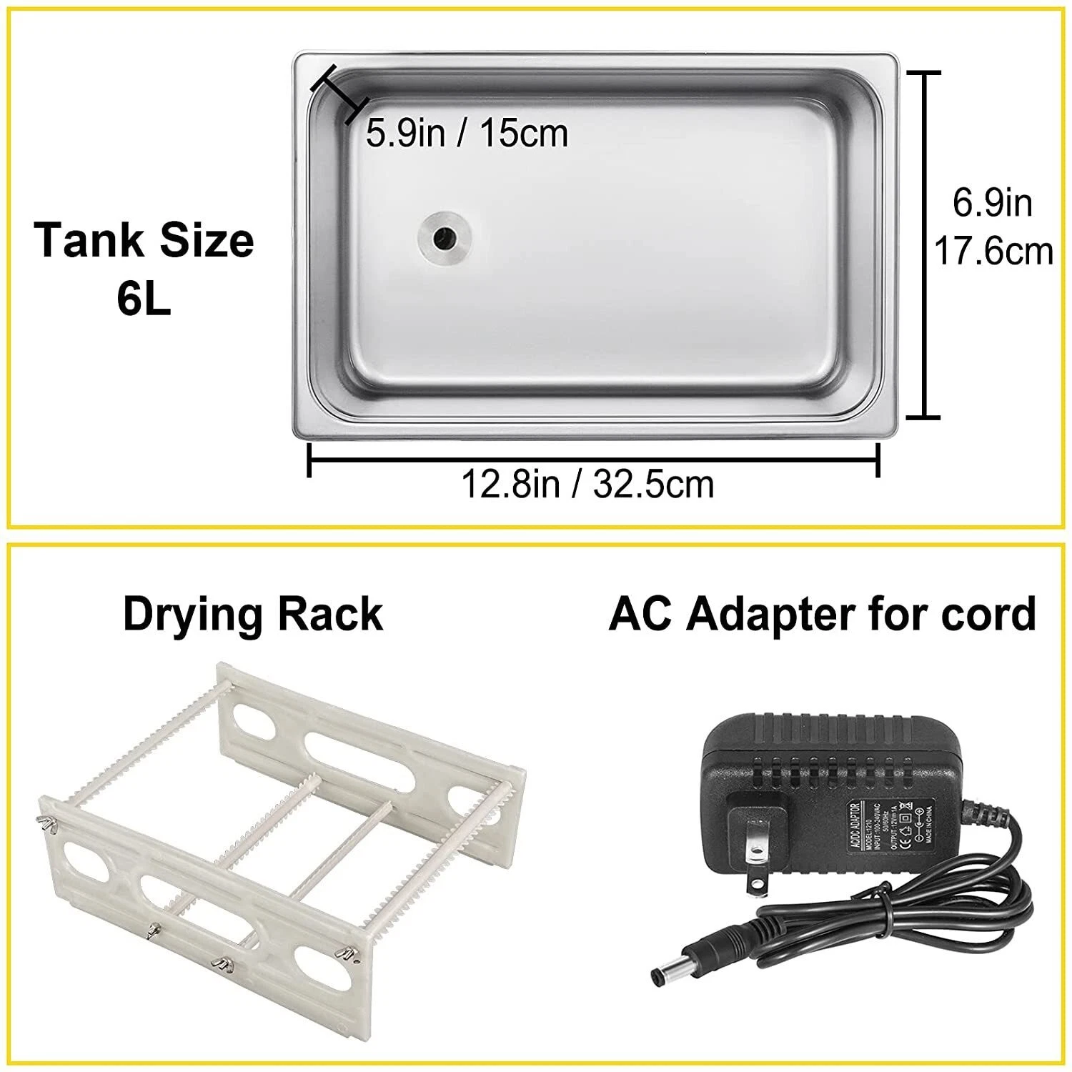 Product Description: Parameter: Working mode: Bottom shock Weight: 7kg External dimensions: 355 * 325 * 415mm Temperature control range: 1~80 ℃ Voltage: 110V, 60Hz Ultrasonic cleaning frequency: 40 Number of slots: single slot Inner groove size: 330 * 300 * 150mm Type: slot type Heating power: 100W Number of oscillators: 3 Time control range: 1-30 Package included: 1* Vinyl Record Washing Machine (Image display album not included)