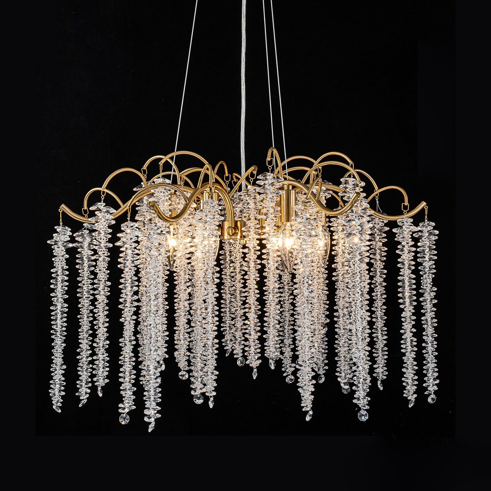 Crafted with meticulous attention to detail, the chandelier boasts a sleek and sophisticated design that effortlessly blends into a range of interior styles. Its chrome/brass-finished frame exudes a warm and inviting glow, providing the perfect backdrop for the shimmering crystals that dangle gracefully. The crystals are precision-cut and hand-selected, ensuring they catch and refract light beautifully, creating a dazzling display of prismatic colors.Feature: Style: Empire style crystal chandelier Dimensions: 23.6" W, 13.78" H Chain Length: Up to 59.06 inches (adjustable) Light source: E12 bulb (not included) Dimming: Can be dimmed by a dimmer switch or a dimmer bulb Free Shipping Over $49.99* Details 6-Light 23.6" W Contemporary Luxury Tassel Crystal Chandelier Product Description: Crafted with meticulous attention to detail, the chandelier boasts a sleek and sophisticated design that effortlessly blends into a range of interior styles. Its chrome/brass-finished frame exudes a warm and inviting glow, providing the perfect backdrop for the shimmering crystals that dangle gracefully. The crystals are precision-cut and hand-selected, ensuring they catch and refract light beautifully, creating a dazzling display of prismatic colors. Feature: StyleEmpire style crystal chandelier Dimensions23.6" W, 13.78" H Chain LengthUp to 59.06 inches (adjustable) Light sourceE12 bulb (not included) DimmingCan be dimmed by a dimmer switch or a dimmer bulb
