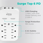 9-IN-1: Power up to 9 devices simultaneously with the Surge Tap 6 PD multi-plug wall tap’s 6 AC outlets, 2 USB-A and 1 USB-C PD ports. 9-IN-1: Power up to 9 devices simultaneously with the Surge Tap 6 PD multi-plug wall tap’s 6 AC outlets, 2 USB-A and 1 USB-C PD ports. SUPER-CHARGED: Fast charge your phone using this outlet extender’s USB-C PD port with 20W power delivery. PROTECTED: Equipped with 980 joules of surge protection to shield your sensitive electronics. CERTIFIED: This USB wall charger is UL/ETL Certified. Electrical Ratings: 15A 125V 60Hz 1875W. GUARANTEED: surge protectors come with a lifetime warranty, $5000 connected equipment warranty, and friendly US-based technical support.