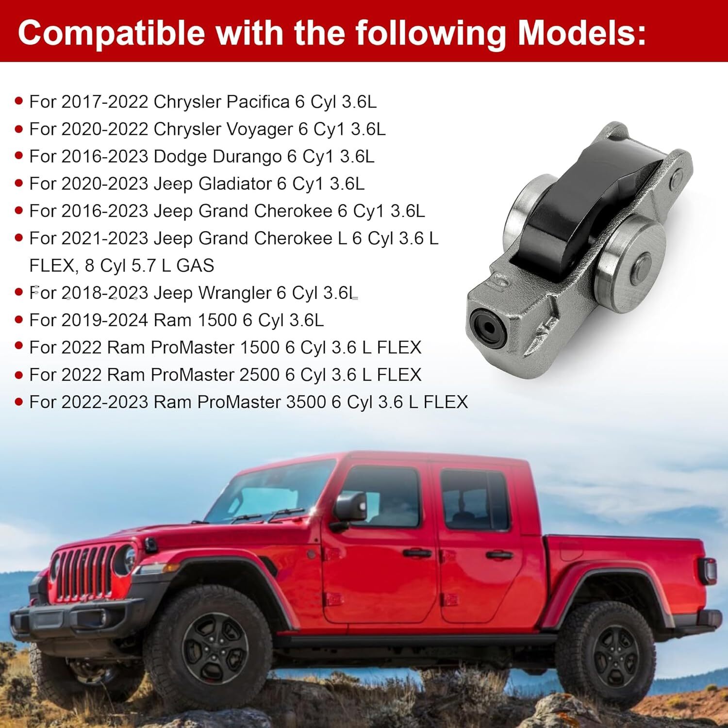 6PCS 5047896AD VALVE ROCKER ARM INTAKE For 2016-2023 DODGE JEEP CHRYSLER 3.6L Feature: · 100% Brand New Items, Never Used Or Installed. · High quality. · Built to strict quality control standards. · Professional installation in highly recommended. · Easy Installation. · Direct Replacement. · Aftermarket Products with Premium Quality. Specification: Condition:New Part Type:Rocker Arm Manufacturer Part Number:5047896AD Fitment Type:Direct Replacement Year:2016 2017 2018 2019 2020 2021 2022 2023 Part Number:5047896AD Replaces Part Number:5047896AC Number of Pieces:6 Fits Intake, Left Or Right Replace Part Number: 170277, 5047896AD, 5047896AC Fitment: For Models with 3.6L V6 Engine For 2017-2022 Chrysler Pacifica 6 Cyl 3.6L For 2020-2022 Chrysler Voyager 6 Cy1 3.6L For 2016-2023 Dodge Durango 6 Cy1 3.6L For 2020-2023 Jeep Gladiator 6 Cy1 3.6L For 2016-2023 Jeep Grand Cherokee 6 Cy1 3.6L For 2021-2023 Jeep Grand Cherokee L 6 Cyl 3.6 L FLEX, 8 Cyl 5.7 L GAS For 2018-2023 Jeep Wrangler 6 Cyl 3.6L For 2019-2024 Ram 1500 6 Cyl 3.6L For 2022 Ram ProMaster 1500 6 Cyl 3.6 L FLEX For 2022 Ram ProMaster 2500 6 Cyl 3.6 L FLEX For 2022-2023 Ram ProMaster 3500 6 Cyl 3.6 L FLEX Package Include: 6 X Valve Rocker Arm Note: 1.Please check the description or use the year/make/model check finder and replace part numbers to confirm the compatibility before purchasing. 2.Professional installation is recommended. Payment Delivery details Returnning About us Contact us Payment Payment Methods & Sales Tax For full details on accepted payment methods and sales tax breakdowns, head to our Shipping & Payments tab—everything you need is clearly outlined there. Order Cancellations We process orders quickly to get your parts to you fast! If you need to cancel after payment is confirmed, please reach out within 24 hours . Our team will work to stop the order, but due to rapid processing, we can’t guarantee cancellation. We’ll keep you updated either way! Quick Note on Sales Tax Sales tax isn’t included in the item price or shipping costs. It’s automatically calculated and collected by eBay during checkout—no extra steps needed from you. Delivery details Shipping Details All orders ship within 48 business hours after payment clears—we move fast to get your parts on the way! Same-Day Shipping (US Warehouse): Most weekday orders placed by 1pm EST qualify for same-day shipping (just let us know if you need it urgent!). Delivery Address & Tracking: We only ship to your eBay-confirmed address (no exceptions). Tracking numbers are automatically uploaded to your eBay order once shipped—you’ll always know where your package is. Delivery Timelines: Typical delivery is 3-8 business days, depending on your location. If you haven’t received your order after 15 days, contact us right away—we’ll trace it and fix the issue quickly. Import Charges Import duties, taxes, and customs fees are NOT included in the item price or shipping cost. These are the buyer’s responsibility. Check with your local customs office for details before purchasing to avoid surprises! Returnning Return Policy We’re here to resolve issues quickly—save time and avoid hassle by contacting our customer service FIRST, whether you have questions before purchasing or need to address a return. Product Quality Issues : If the item has quality problems (even if used, or packaging is missing), contact us directly. We’ll process a full refund without requiring a return —no extra steps needed. Item Doesn’t Match Your Vehicle : If the part doesn’t fit, share your machine/model number with our team. We’ll help identify the correct part, and you can purchase it at a significant discount. No need to return the original item—keep it as a spare or gift it! Incorrect Purchase : Bought the wrong part? We suggest reselling it, gifting it, or letting us assist—we can help connect you with other US customers looking for this item. Just reach out, and we’ll guide you. About us Get in Touch Got questions? Reach out anytime—message us through eBay’s “Contact Seller” feature, or email us with your eBay ID and item number. We’ll respond promptly! Feedback Matters If you’re happy with your order, please leave positive feedback and 5-star DSRs—your support helps us keep delivering great service! We’ll automatically send you positive feedback right back—no extra steps needed. We’re Here to Fix Issues Our goal? 100% satisfaction. If something isn’t right, let us know first—we’ll move quickly to resolve it. Negative or neutral feedback rarely solves problems, but working together does. Drop us a line, and we’ll make it right. Contact us Got Questions? We’re here to help! Shoot us a message through eBay—we’ll respond promptly to get you answers fast. Customer Service Hours (Closed on holidays, Saturdays, and Sundays) PST (Pacific Standard Time): 5:00 PM – 2:00 AM PDT (Pacific Daylight Time): 6:00 PM – 3:00 AM UPC Does not apply Brand Virego Type Rocker Arm Set Manufacturer Part Number 5047896AD OE/OEM Part Number 5047896AD, 5047896AC Items Included Rocker Arm Material Stainless steel Country/Region of Manufacture China Manufacturer Warranty Lifetime Quantity 6pcs Finish Polished Interchange Part Number 5047896AD Fitment Type Direct Replacement Superseded Part Number 5047896AD Engine 6 Cyl 3.6L Compatible Make Ram , Jeep , Chrysler , Dodge Fits 1 For 2017-2022 Chrysler Pacifica 6 Cyl 3.6L Fits 2 For 2020-2022 Chrysler Voyager 6 Cy1 3.6L Fits 3 For 2016-2023 Dodge Durango 6 Cy1 3.6L Fits 4 For 2020-2023 Jeep Gladiator 6 Cy1 3.6L Fits 5 For 2016-2023 Jeep Grand Cherokee 6 Cy1 3.6L Fits 6 For 2021-2023 Jeep Grand Cherokee L 6 Cyl 3.6 L FLEX, 8 Cyl 5.7 L GAS Fits 7 For 2018-2023 Jeep Wrangler 6 Cyl 3.6L Fits 8 For 2019-2024 Ram 1500 6 Cyl 3.6L Fits 9 For 2022 Ram ProMaster 1500 6 Cyl 3.6 L FLEX Fits 10 For 2022 Ram ProMaster 2500 6 Cyl 3.6 L FLEX Fits 11 For 2022-2023 Ram ProMaster 3500 6 Cyl 3.6 L FLEX
