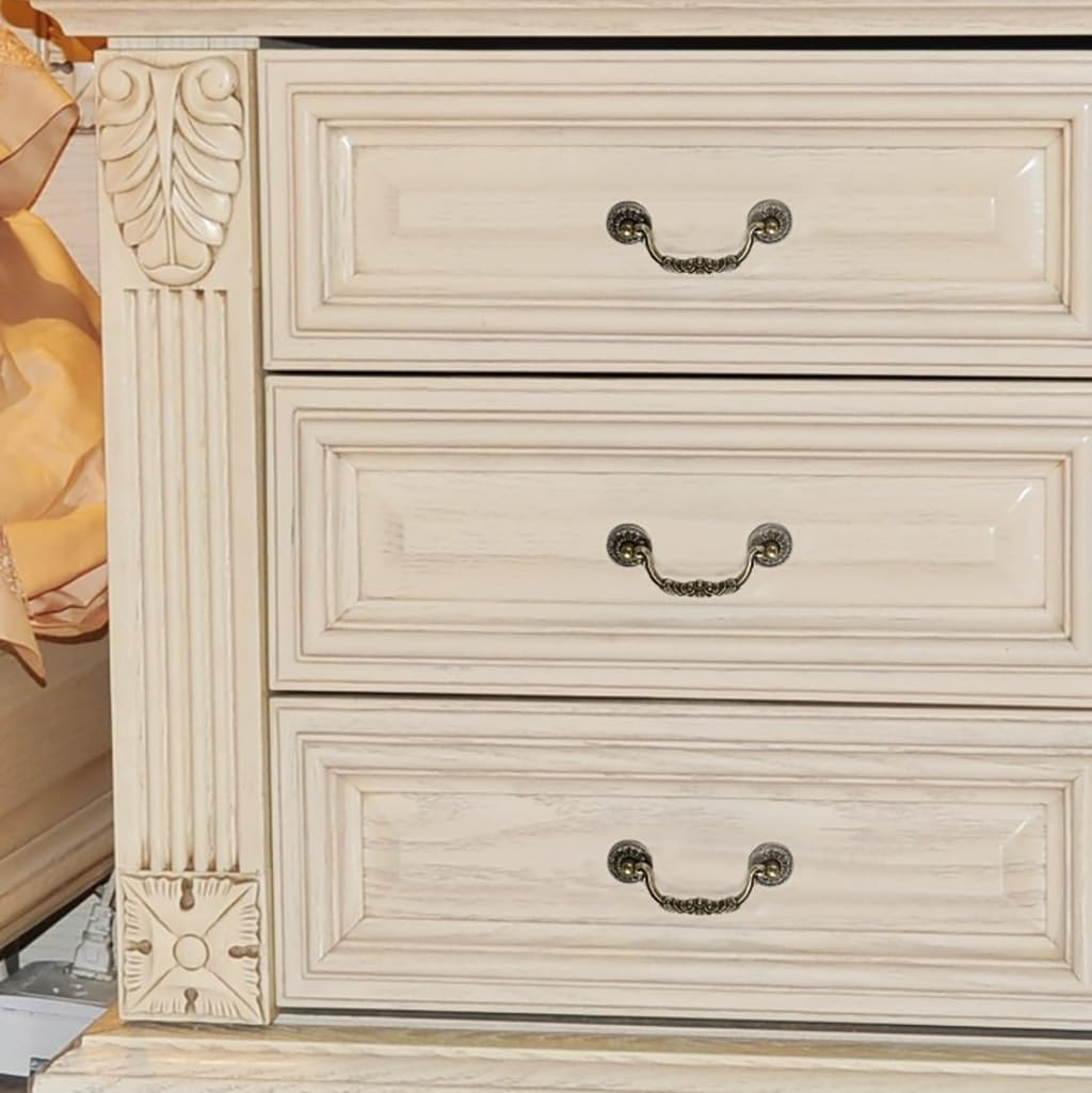 【Antique Bronze Cabinet Pulls】These antique bronze cabinet pulls have been carefully designed and hand painted. It will make your house super charming. 【Size】Distance between holes at both ends: 5inch / 128mm; Total Length:6.3 inch / 160mm; Width:2.5 inch / 64mm; Height:0.7 inch / 18mm. 【Including Break-away screws】:Each handle comes with regular screws(0.87inch) and Break-away screws(1.77inch). The Break-away screws can be cut into 6 different length screws, suitable for most boards thicknesses. 【Package】 6 × Drawer Pulls;12 × 0.87" Screws;12 × 1.77" Break-away screws;24 × Washers(Thickness 0.03") 【Multi-Purpose】 Whether used to replace old handles or to fit on a new cabinet, it makes the furniture cabinet sparkle,perfect for doors for any purpose such as drawer door, wardrobe door, cabinet door, cupboard door, also for cabinet dresser drawers cupboard wardrobe bookcase.Great helper to pull out drawer,cabinets and other furniture. 【Easy to Install】 It's quite easy for you to install them just with home little tool. Specification Material: Material: Zinc Alloy Distance between holes at both ends: 5inch / 128mm; Total Length:6.3 inch / 160mm; Width:2.5 inch / 64mm; Height:0.7 inch / 18mm. Screw diameter:4mm/0.157" Screw length≈Board thickness + 0.2" Package: 6 × Drawer Pulls 12 × 0.87" Screws 12 × 1.77 inch Break-away screws(Use pliers to cut into 6 different length screws: 0.59 inch/0.83 inch/1.06 inch/1.30 inch/1.54 inch/1.77 inch) 24 × Washers(Thickness 0.03") Installation: 1.Locate and mark where to place the handles on the drawer; 2.Drill hole through the front of the drawer/cabinet at the handle's marked location(hole diameter≈4mm); 3.Push and screw the bolts through the holes from the backside of the drawer/cabinet.