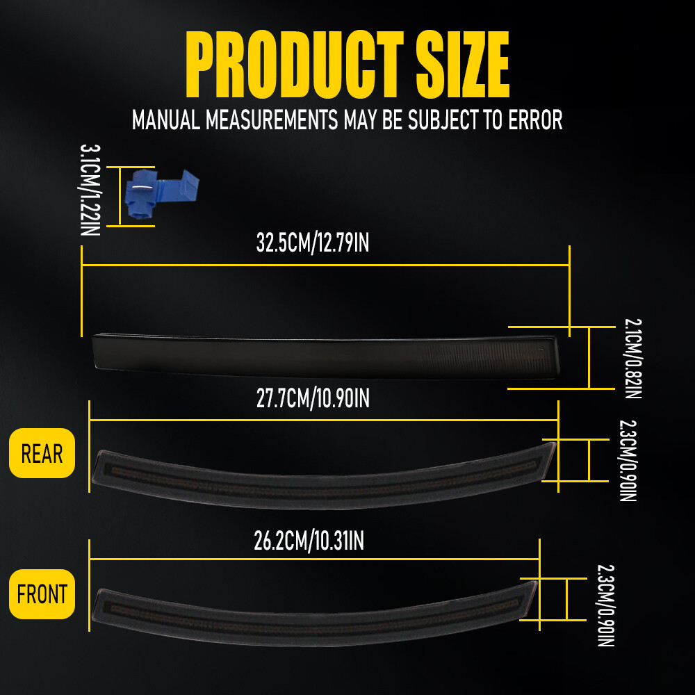 Fit for: 2014-2019 Chevrolet Corvette C7 Specifications: Product material: ABS+PC+LED Lens color: Smoked Mode: Red (constantly illuminated) Waterproof grade: IP67 Service life: 50000h + Features: *Direct replacement Simple installation with direct replacement saves your precious time. *High-quality material Made of high-quality ABS material to ensure its long service life and durability. *Good sealing Properly sealed to prevent water leaks and condensation from housing. *Perfect match Manufactured according to original part for matching with your vehicle perfectly. *Excellent design 6PCS LED Side Marker Light Bumper Reflector Lamp For 14-2019 Chevy Corvette C7 M Fit for: 2014-2019 Chevrolet Corvette C7 Specifications: Product material: ABS+PC+LED Lens color: Smoked Mode: Red (constantly illuminated) Waterproof grade: IP67 Service life: 50000h + Features: *Direct replacement Simple installation with direct replacement saves your precious time. *High-quality material Made of high-quality ABS material to ensure its long service life and durability. *Good sealing Properly sealed to prevent water leaks and condensation from housing. *Perfect match Manufactured according to original part for matching with your vehicle perfectly. *Excellent design Designed to coordinate with the whole car style. The light of the rear bumper light is evenly distributed to avoid glare or dark areas, which can ensure driving safety. Packaging include: Rear bumper light*2 Side Marker light*4 ABOUT US 6PCS LED Side Marker Light Bumper Reflector Lamp For 14-2019 Chevy Corvette C7 M Fit for: 2014-2019 Chevrolet Corvette C7 Specifications: Product material: ABS+PC+LED Lens color: Smoked Mode: Red (constantly illuminated) Waterproof grade: IP67 Service life: 50000h + Features: *Direct replacement Simple installation with direct replacement saves your precious time. *High-quality material Made of high-quality ABS material to ensure its long service life and durability. *Good sealing Properly sealed to prevent water leaks and condensation from housing. *Perfect match Manufactured according to original part for matching with your vehicle perfectly. *Excellent design Designed to coordinate with the whole car style. The light of the rear bumper light is evenly distributed to avoid glare or dark areas, which can ensure driving safety. Packaging include: Rear bumper light*2 Side Marker light*4 FAQ Shipping Returns Contact Us Payment Why swith to LED? LEDs not only give your vehicle a clean, modern look but, with proper use, will outlast any halogen bulb and HID bulb! Low energy draw, high lumen output, and instant on/off LED technology out shines stock bulbs in every way. Which bulbs are used in my vehicle? Check Sylvania automotive lamp replacemnt guide , you can select the year, make, and model of your vehicle, then select the application you want to replace or upgrade from stock. What does CAN Bus mean? CAN Bus means Controller Area Network Bus. This system monitors your vehicle and reports operating conditions. CAN Bus systems are commonly found in European vehicles such as BMW, Audi, Mercedes, Volkswagen, Porsche, and in many American vehicles. While most late model American vehicles have CAN Bus systems, it is always good to check with your vehicle dealer to see which system your vehicle has before purchasing electrical products. When do you need Warning Canceller? Some vehicles with cmplex internal computers(such as Audi,BMW,Jaguar,Mercedes,etc.) might report on-dash errors or flickering on the headlights. The warning canceller fixes the dashboard warning and flickering effect. Bulb Out Dashboard Error: On some vehicles, the dashboard will report as if you have a headlight bulb missing or burnt. It does not affect the headlights functioning, but the light on-dash will be on. The warning canceller fixes the issue. Flickering Issue: This happens when your vehicle does not recognize the new headlights installed. When turning the headlights on, the vehicle's computer does not understand the signal back from the headlights hence thinking they are still off. This triggers the headlight flickering effect. The warning canceller solves this issue. LED Advantages: Very low and efficient energy consumption than halogen bulbs & HID Bulbs Compared with HID bulbs, LED bulbs Light up instantly, no warm up period Low voltage protection, high precision constant current driver chip Longer lifespan than HID and halogen bulbs Light can be controlled easily in color and intensity Easy to install a LED headlight conversion kit (1) We will ship your item(s) within 24 hours. (2) We ship this item to US only via USPS first class mail. It usually takes 3-6 working days to deliver. How Long Will It Take to Receive My Refund? If you have emailed us for a refund ,once we have approved it ,after 60 days your money will be refunded. The estimated time for the refund to appear in your account is based on the payment method you use. Paypal is the only supported in NIGHTEYE Store. Please notify us within 30 days after you've received your purchased item. All return requests must be submitted through your eBay account. NOTE: Buyers pay for the return shipping fee. Items to be returned must be in resalable condition, for example: You do not satisfy the item quality Item do not fit your vehicle perfect Item can not reach your expectation The item arrived be broken You do not receive the item Parcel Lost Receive the wrong item If you have problems with the above issue, please Contact Us immediately ! [Our office hours are MONDAY - Saturday 9:00PM - 6:00PM PST, but we will response you once we get your message .There will be some delay on respons if you send message or E-Mail on Sundy.] (1).Negative feedback will not help resolve any problems you have, please contact us via eBay messages before leaving negative feedback, our customer service will make best effort to help you with the issues. (2).We maintain high standards of excellenceand strive for 100% cus