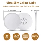 【3 Color in 1 Ceiling Light】This surface mount light fixtures offers 3 color temperatures for you to choose, you can choose 3000K comfortable and warm warm white for bedrooms and living rooms, 4000K neutral white for kitchens and bathrooms, and 6000K daylight white for tasks such as workplaces and reading and studying, you can choose your favorite color temperature in different places or atmospheres. (NOTE:Non-Dimmable) 【Energy Saving】 This is an integrated LED ceiling lamp with 2520 lumens at only 24W (equivalent to a traditional 110W fluorescent), a great alternative to traditional light bulbs. Energy saving up to 90%. Provide enough brightness for medium-sized places with lower energy and power costs. 【Excellent Lighting Performance】 Our led ceiling light fixtures built-in light filtering technology LEDs as its side light source, while the Nano soft light coverage to provide 360°wide uniform lighting, providing you with a soft, even and non-stinging light , and illuminating a larger area. No flickering, no buzzing. 【Ultra-thin Design】 The thickness of the whole ceiling light is only 0.9 inches. Perfect for bedrooms, apartments, attics and other rooms with low ceilings. And with its modern, simple and classic look, it won't look out of place in your home. 【Well Sealed】The ultra-thin led bathroom lights is designed with one-piece sealing, which is well sealed to prevent dust and flying objects from entering. With IP42 waterproof rating, it provides excellent performance in wet conditions and keeps the interior clean after years of use.The flush mount ceiling light is made of high-quality insulating plastic, which prevents the risk of short-circuiting and leakage, and no need to connect to a ground wire, which ensures the safety of your family.