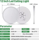 6PK 12 Inch LED Flush Mount Ceiling Light, , 2520LM, 3000K/4000K/6000K CCT Selectable, Round Flat Panel Light Low Profile Ceiling Light Fitures for Hallway, Kitchen, Bedroom, Laundry Room CCT Selectable:This flush mount ceiling light fixture has 3 color temperatures optional:3000K/4000K/6000K, you can set your favorite color directly on the fixture before installation. Sealed Slim LED Flat Panel Ceiling Lights: With a height of only inches, it is ideal for low ceilings rooms like bedroom, apartment, attic, and it is well sealed to prevent dust and flying objects from entering, provie great performs in wet conditions. Quality Light Source: Use blue light filter technology LED as light source, while use Nano soft light coverage to provide 360°wide uniform lighting, provides you with soft, even, and non-glaring light, ideal for home/office/school lighting. Energy Savings: This is a integrated LED flush mount ceiling light, shine 2520LM with only power, LED is equivalent to a traditional 150W fluorescent flush mount ceiling lamp, and it saves a great deal of electricity cost. Modern ceiling light provides great lighting light, less energy. COST-EFFECTIVE: Outstand product accompanied with high quality services, we promise 3 s if anything goes wrong. 6PK 12 Inch , 2520LM, 3000K/4000K/6000K CCT Selectable LED Flush Mount Ceiling Light This ceiling light is integrated LED mount ceiling light, gives off higher brightness than the traditional incandescent bulb with less energy and electricity bill, and it is well sealed to prevent dust and flying objects from entering, provie great performs in wet conditions. Product Details: Light Source: LED Power: Voltage: 100-277V Size: Φ inch, H = inch WaterProof level: IP42 CRI: 80 Color Temperature: 3000K/4000K/6000K CCT Selectable Package List: 6* 12 inch round ceiling light 6* accessories kits 1* Instruction