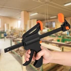 4 Pack 6 inch Wood Clamps for Woodworking, One-Handed Bar Clamp/Spreader, Quick Trigger Clamps F Clamp with 150 LBS Load Limit for Gluing Securing, Carpentry and DIY Specification: Color: Black Materials: Steel, plastic Size: 6inch Applications: Woodworking assembling, gluing projects, handicraft making, etc Package included: 4 Pack F Clamp Package: Include 4 pack 6'' bar clamps. The 6" clamps can be set to spreaders of sizes up to 11-9/64". Clamping capacity up to 6 in, throat depth 2-1/8 in High Quality Steel: F clamp is made of high quality hardened steel with soft pads, provide great impact resistance, which is totally able to withstand the heavy use expected on construction sites Easy to Use: Simply adjust the jaws and pull the push handle to clamp or release the work-piece, and the opening capacity can be easily adjusted. Also can be a spreader, just push the red button,remove the jaws,then reverse it and put it back in place Up to 150LBS Clamping Force: The pads of quick trigger clamps are made of resilient materials and non-slip textures, that provide a larger area of thrust surface, enhances the overall clamping force. Soft pad protects your project Multi Purpose: These bar clamps are suitable for woodworking assembling, welding, gluing projects, handicraft making, etc. Perfect for professionals, amateurs, DIY hobbyists, carpenters and cabinet makers