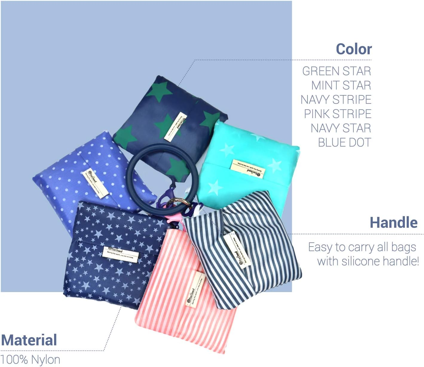 Home6-Pack Foldable Reusable Grocery Bags with Ring Holder - Machine Washable